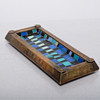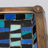 Rectangular barrel in heavy, heavy metal (approx. 1.7 kg) with recessed mosaic in blue and black tones. Solid workmanship with clear weight and a sense of quality. Stylistically with influences from the Middle East combined with European arts and crafts from the later part of the 20th century.