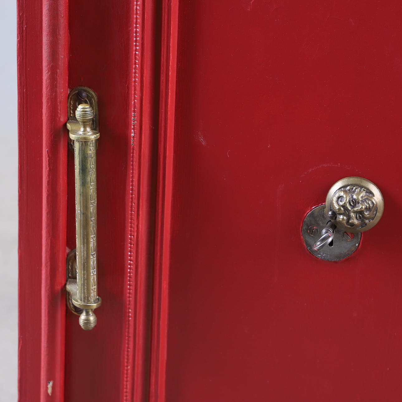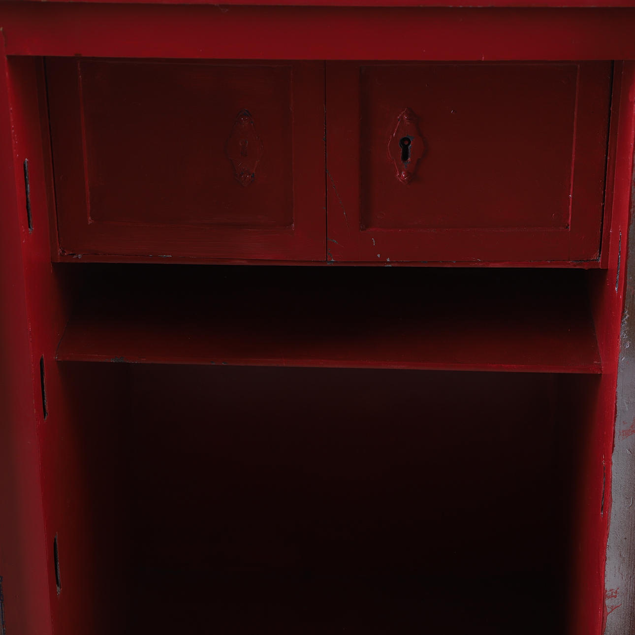 Interior cabinet locked and missing key. Normal wear and tear, marks, paint wear, Later painted.
