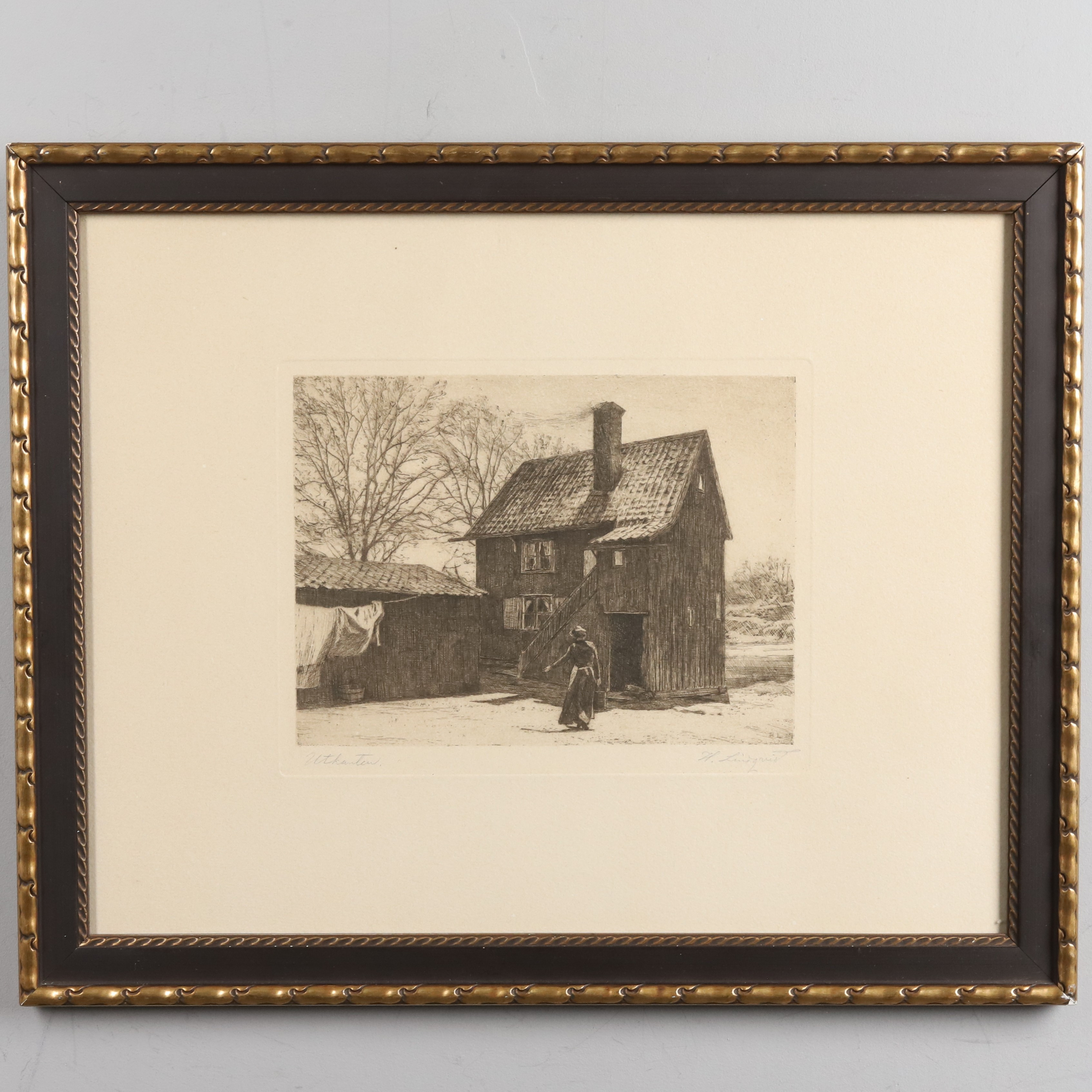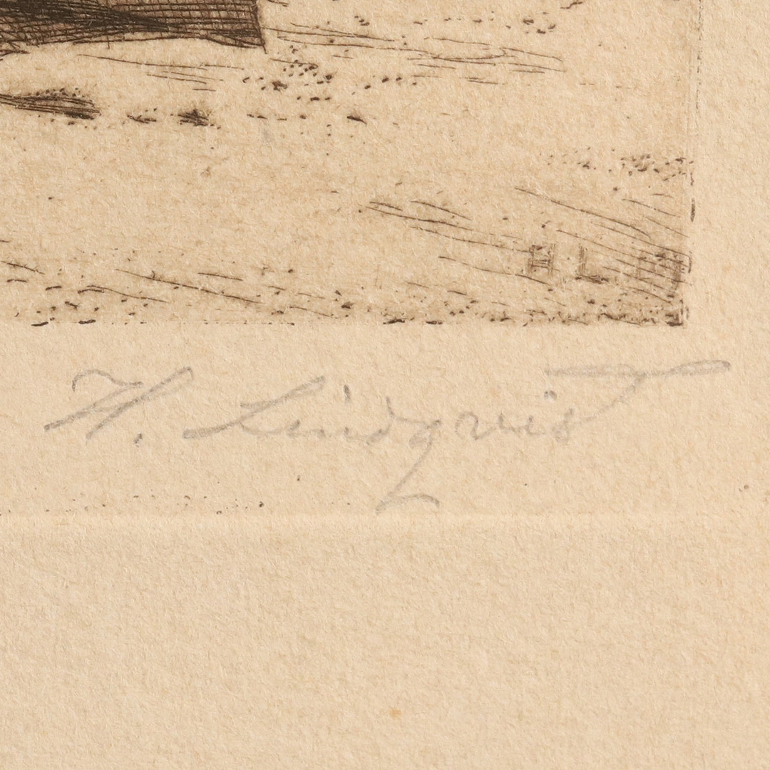 4990094. HERMAN LINDQVIST. ETCHING, “Outskirts”, signed.