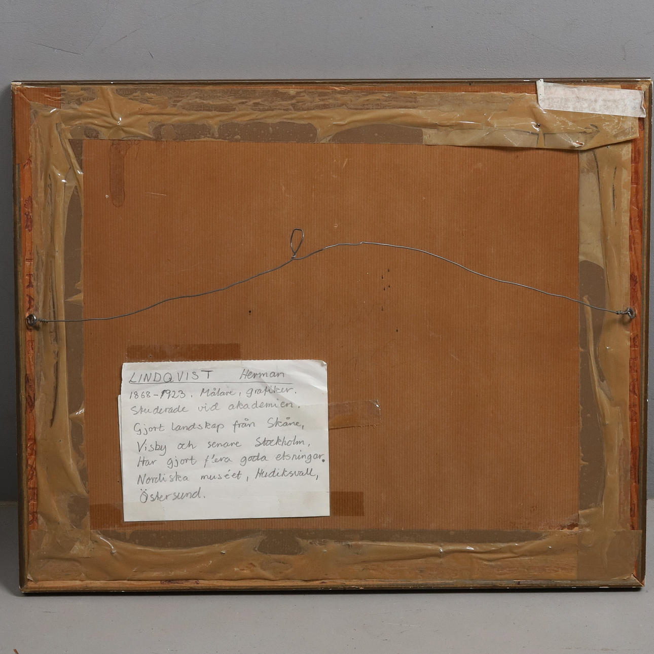 HERMAN LINDQVIST. ETCHING, “Outskirts”, signed.