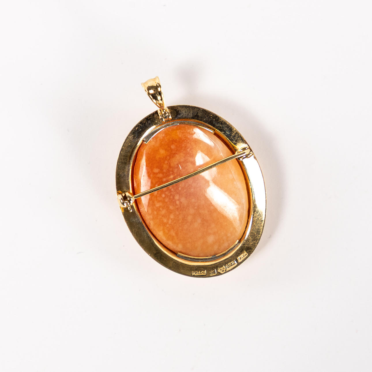 Jewellery set, camé, 18k gold, 3 pieces, weight 9,9 gram, pendant length 43 mm.