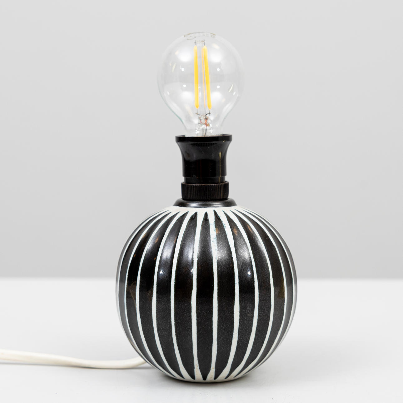 Spherical foot with black and white striped decor. Height approx. 9 cm.