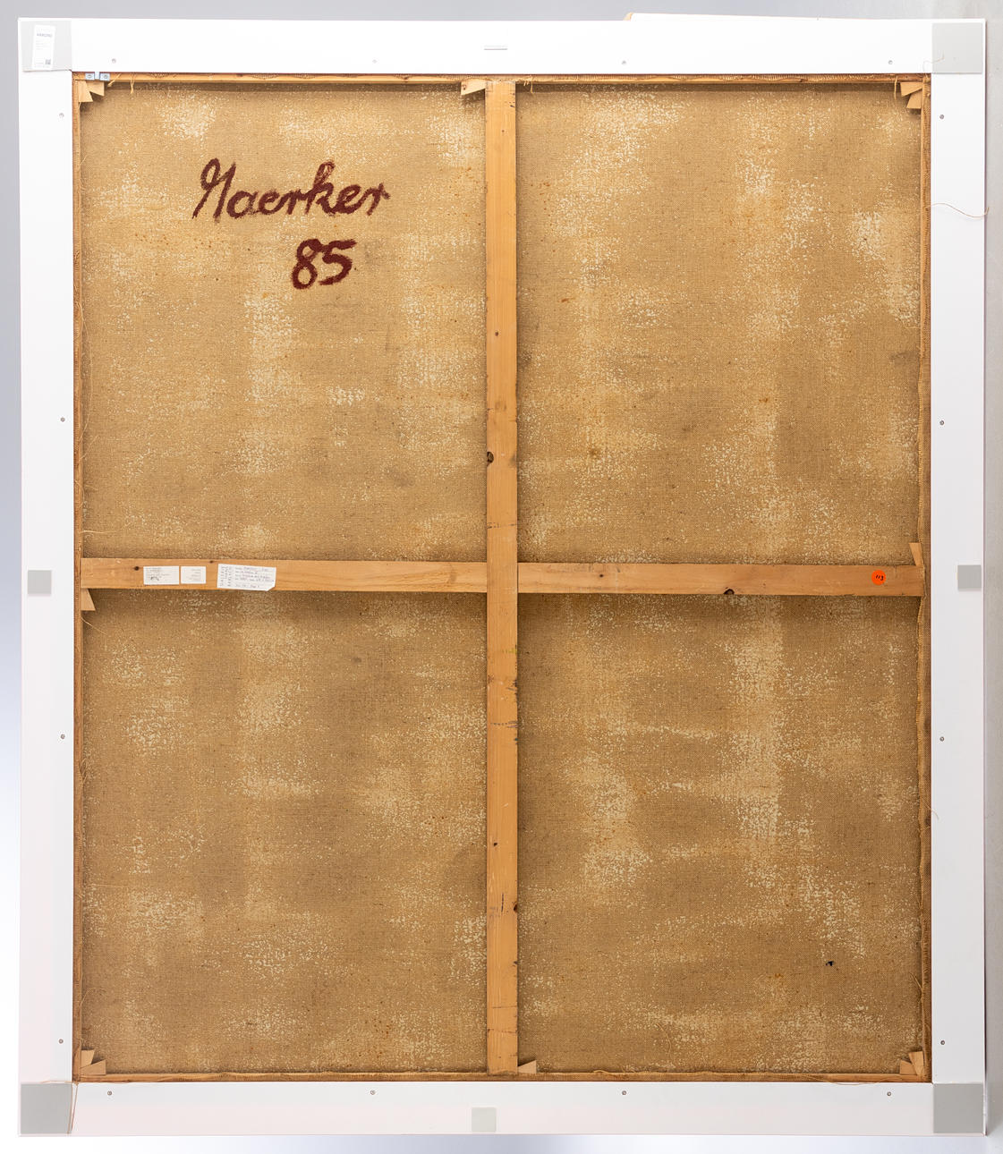 Fred Märker (b. 1950), Port V, tempera on Rupfen, 1985, signed and dated on the back, on the stretcher frame with an old label from Galerie Hans Barlach, the painting was part of the series of works 'Hamburger Hafen', ca. 210 x 180 cm