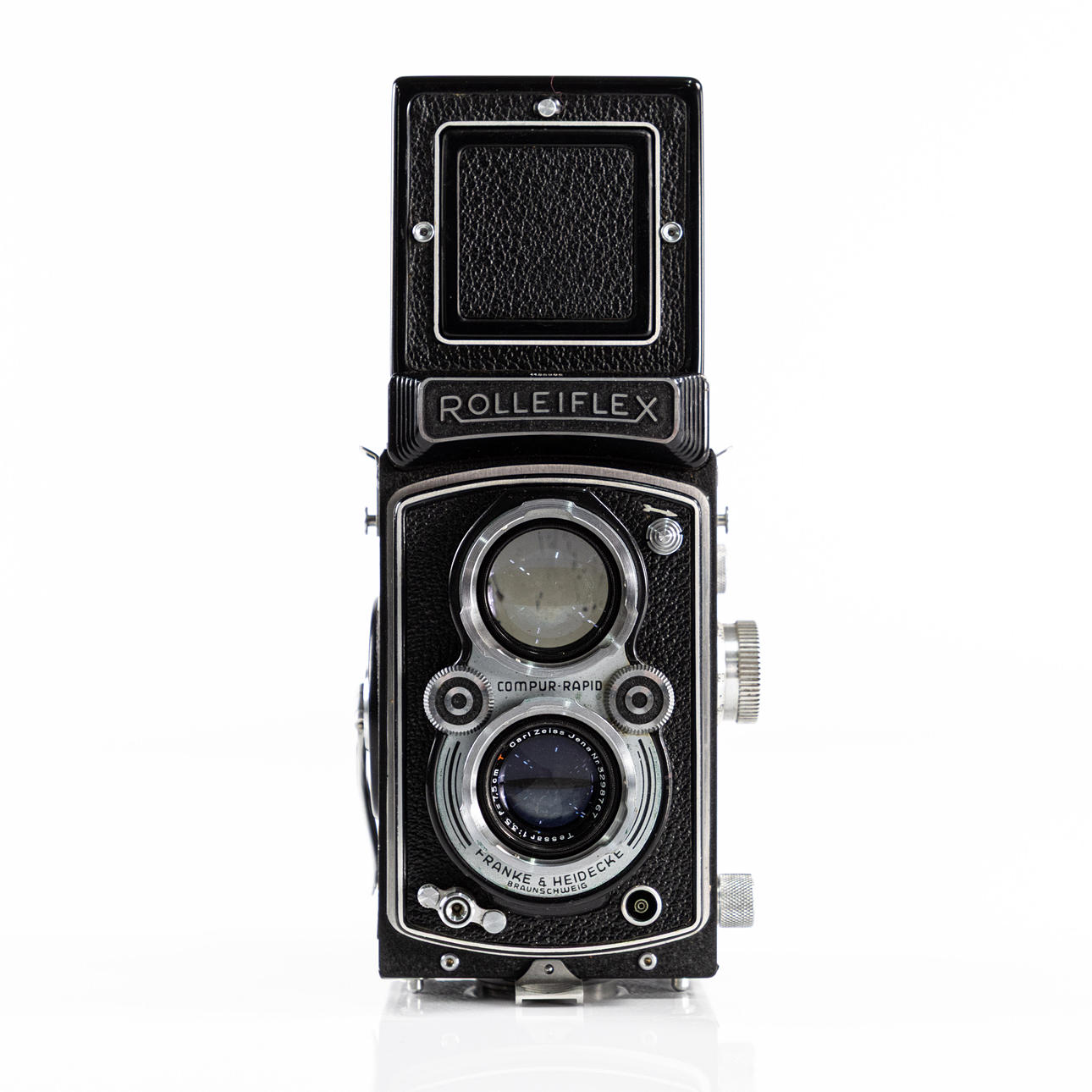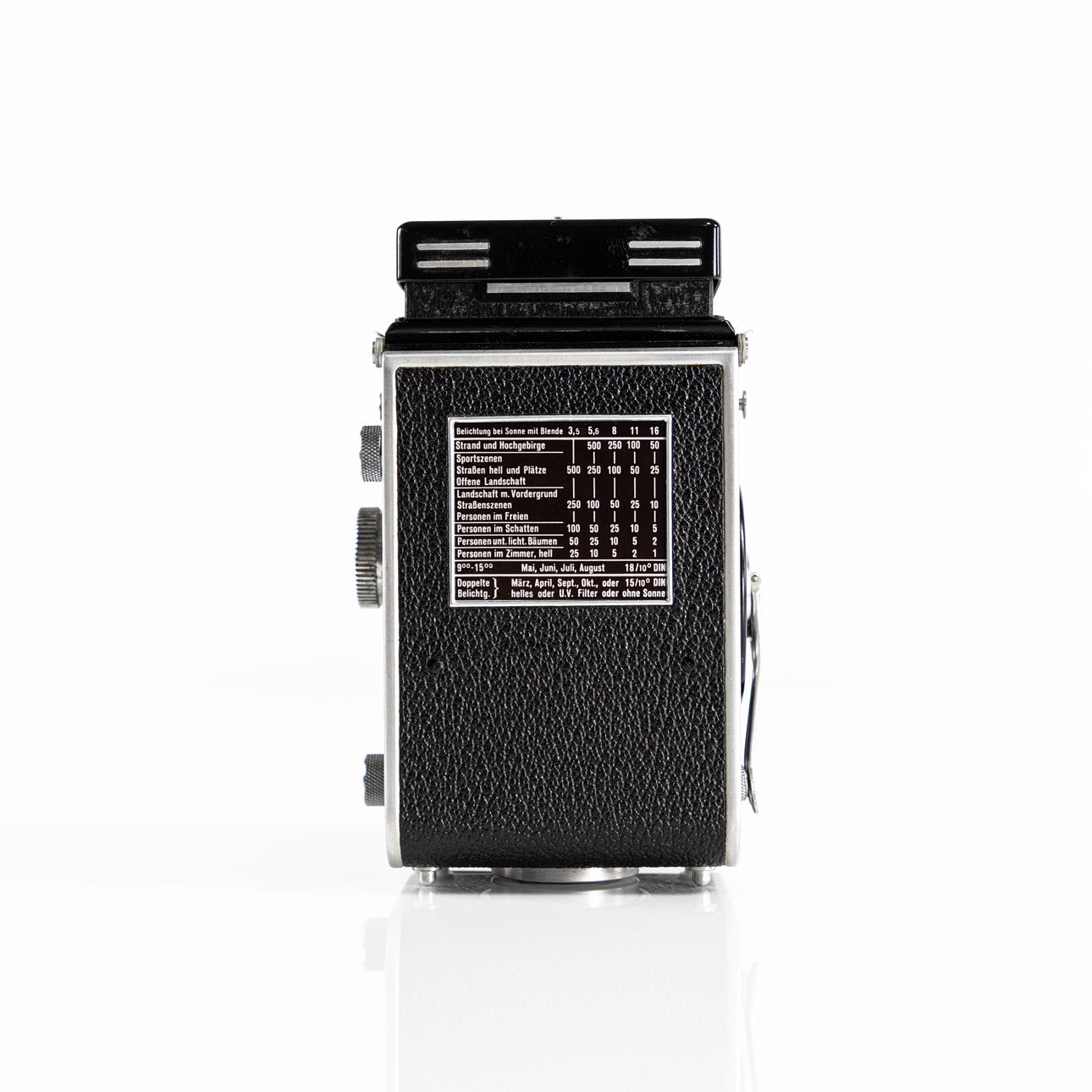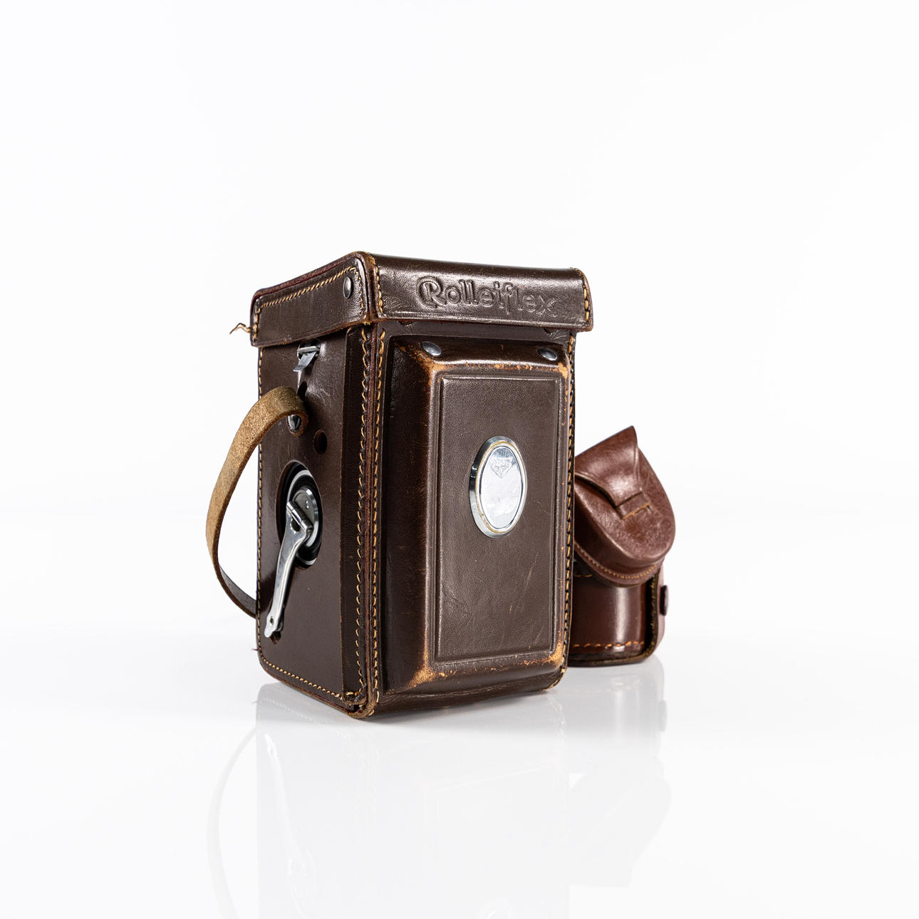 TLR, Rolleiflex 3.5, Optik; Carl Zeiss Jena Tessar 75 mm/ 1:3.5, circa 1950's, Germany, comes in original leather storage case with backlight protection