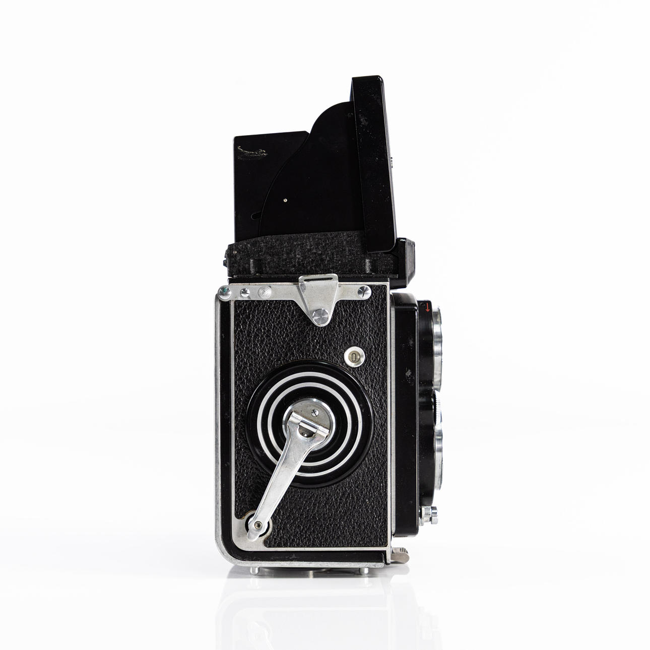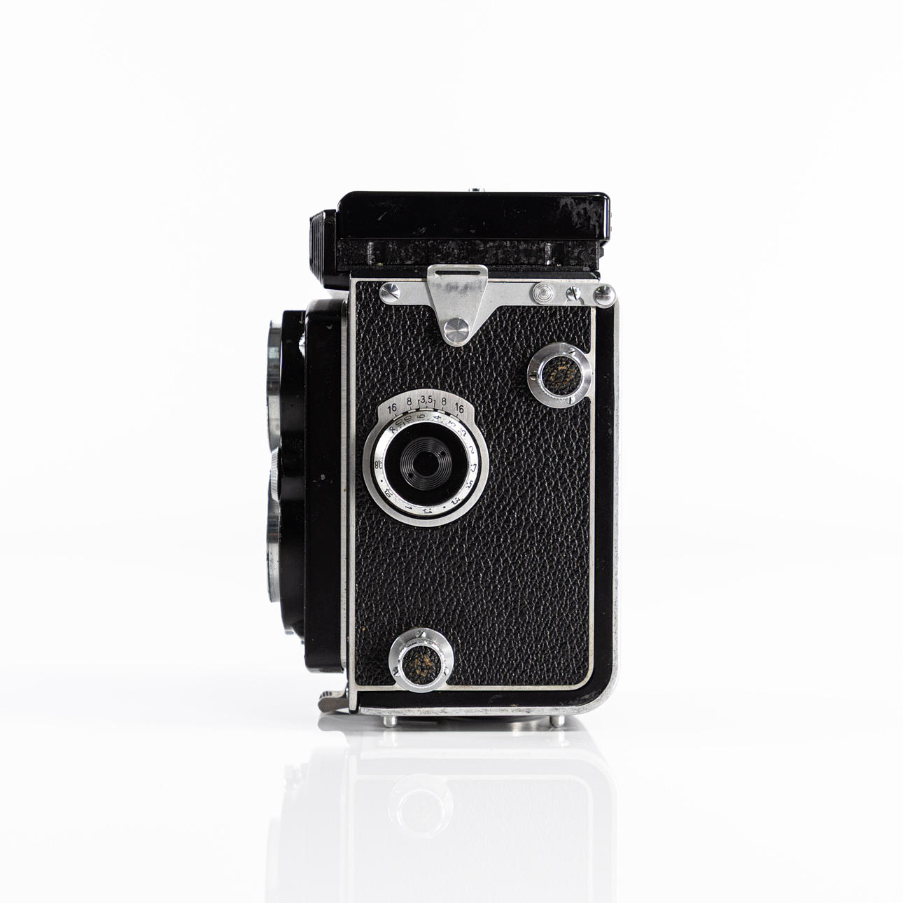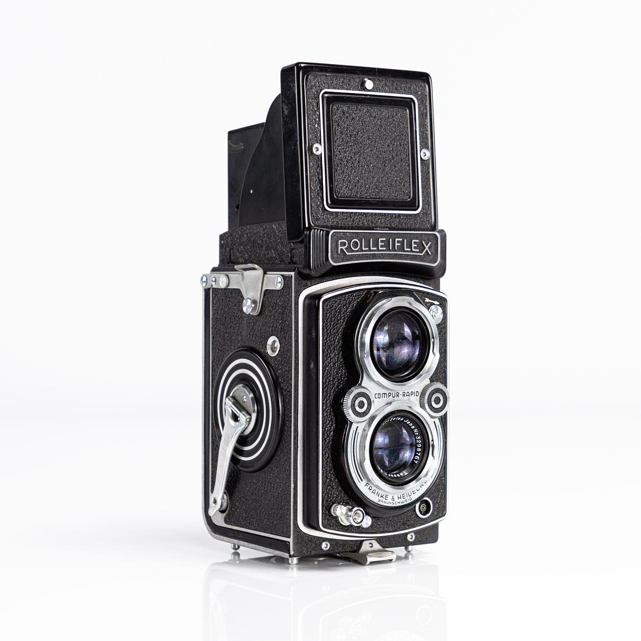 TLR, Rolleiflex 3.5, Optik; Carl Zeiss Jena Tessar 75 mm/ 1:3.5, circa 1950's, Germany, comes in original leather storage case with backlight protection