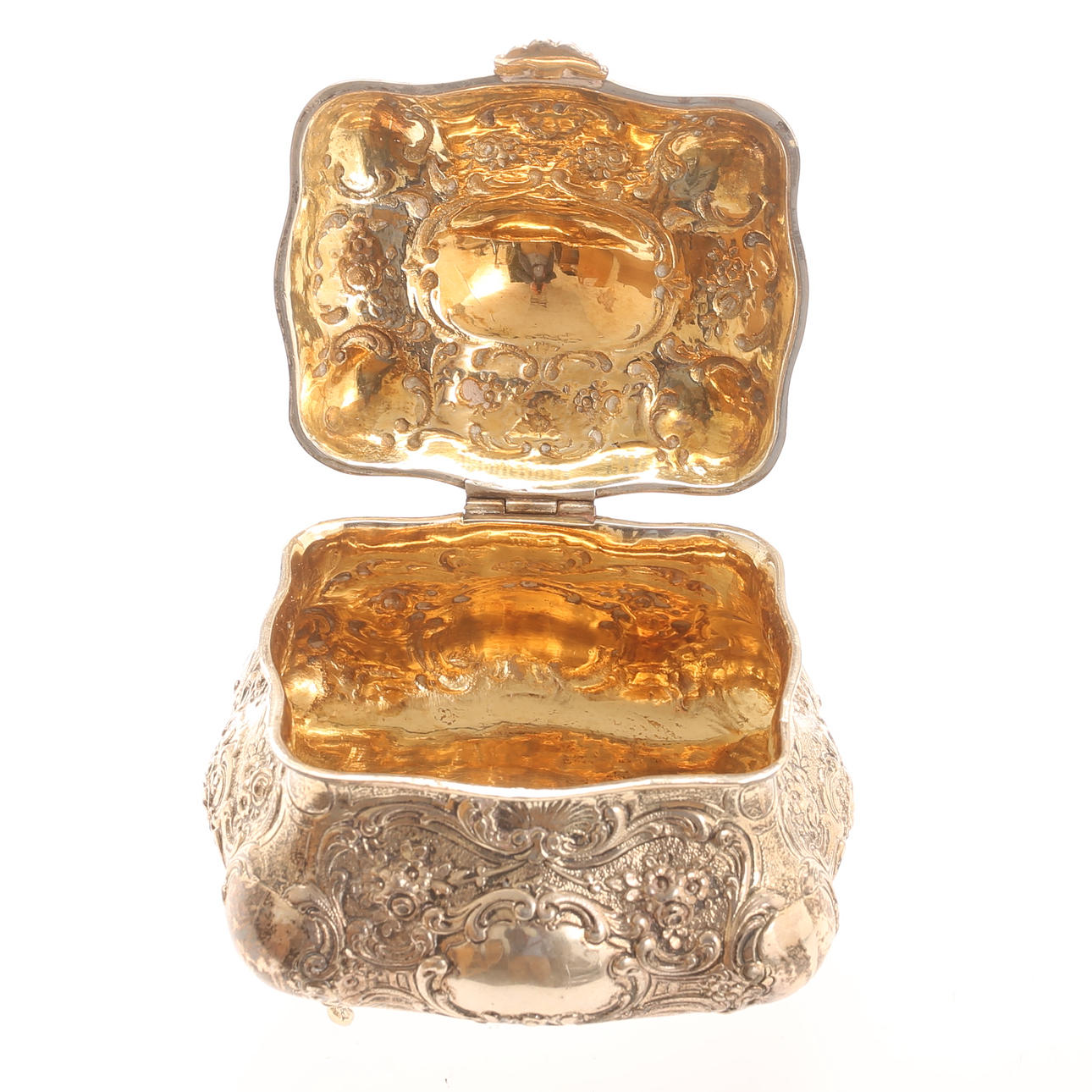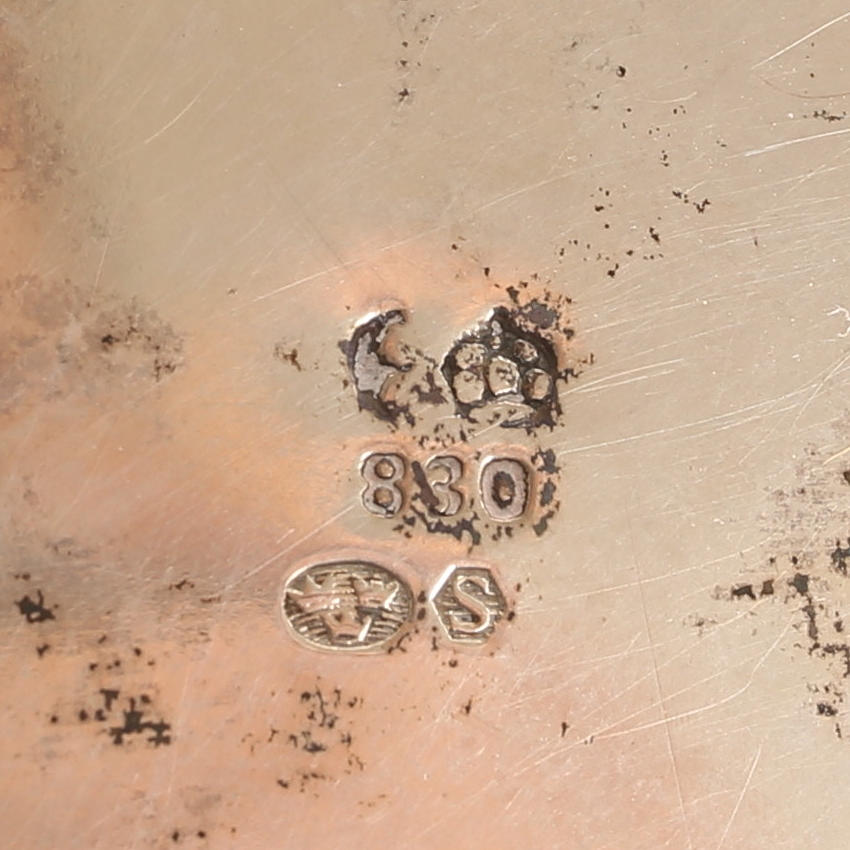 Interior gilded. Height approx. 10 cm, approx. 10 x 10 cm. Weight ca 228 g.