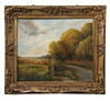 Oil on board, Autumn Fields, probably Suffolk, 75cm x 63cm, within a gilt gesso frame.
