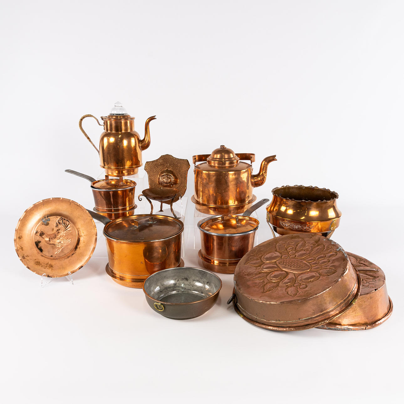 Copper objects, one lot, fol. a. Skultuna, largest diameter 31 cm, largest height 23 cm.