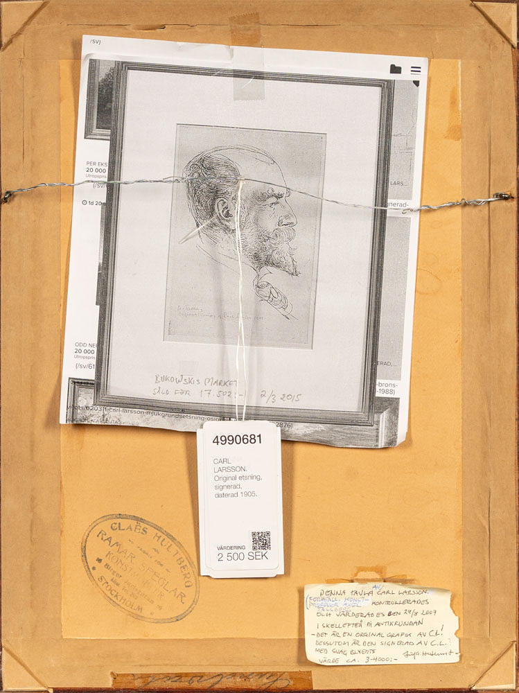 4990681. CARL LARSSON. Original etching, signed, dated 1905.