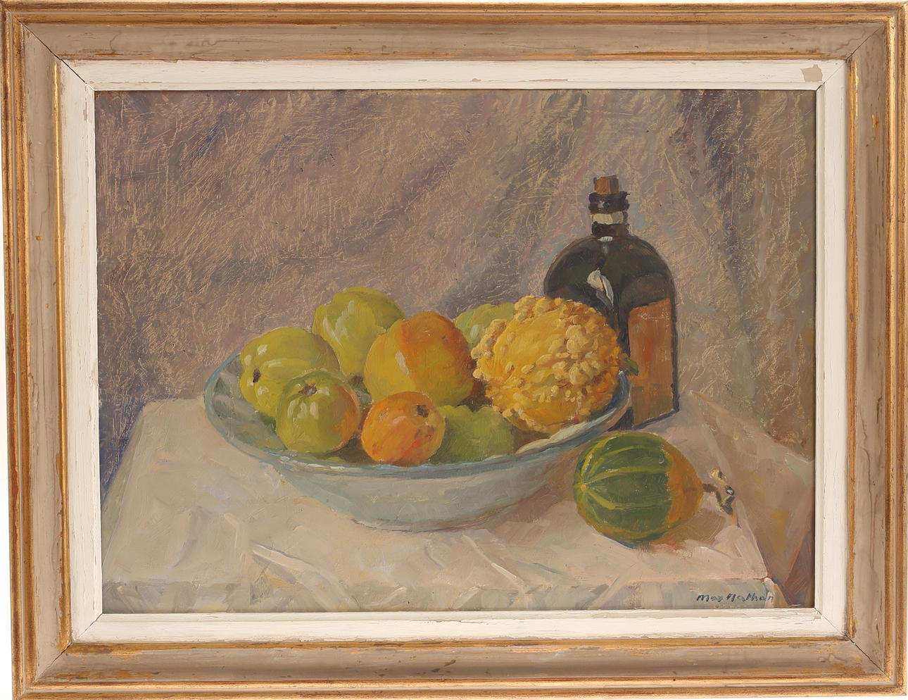 MAX NATHAN. Oil on panel, Still life, signed.