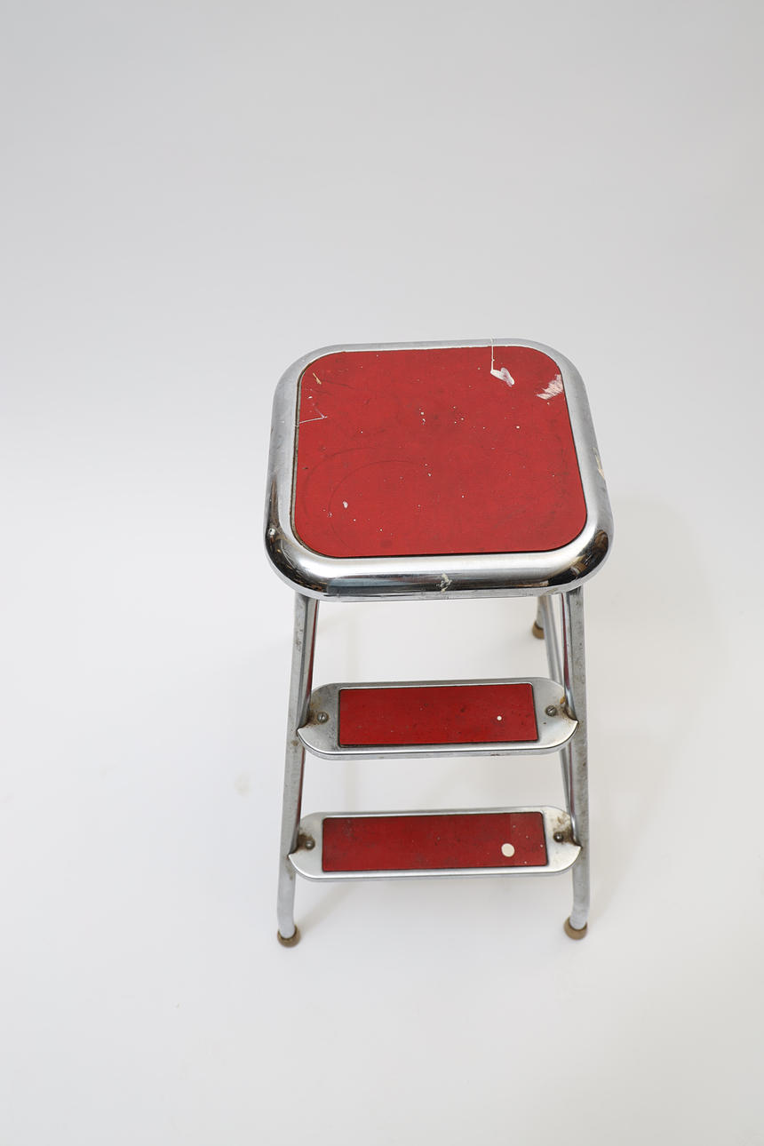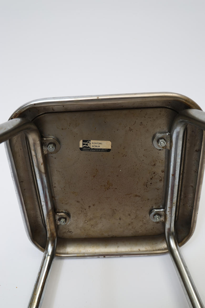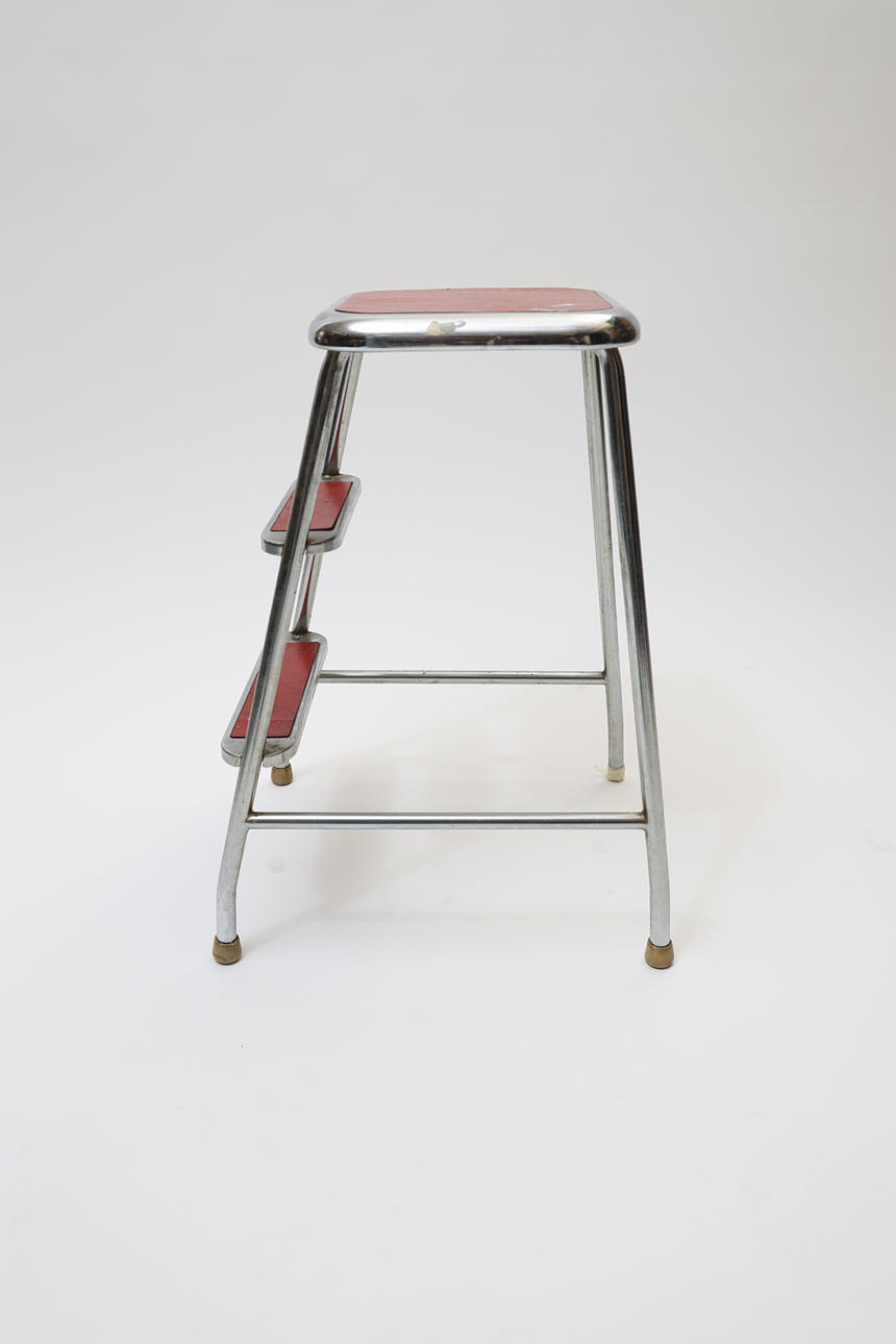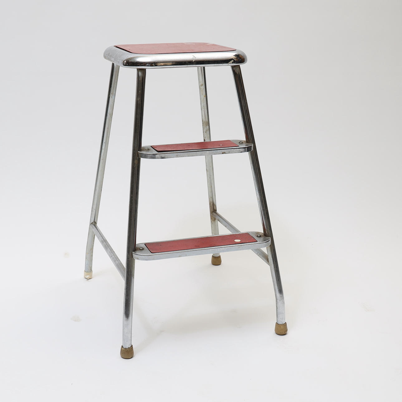 Chromed metal and laminated steps. Labeled. Height 61cm.