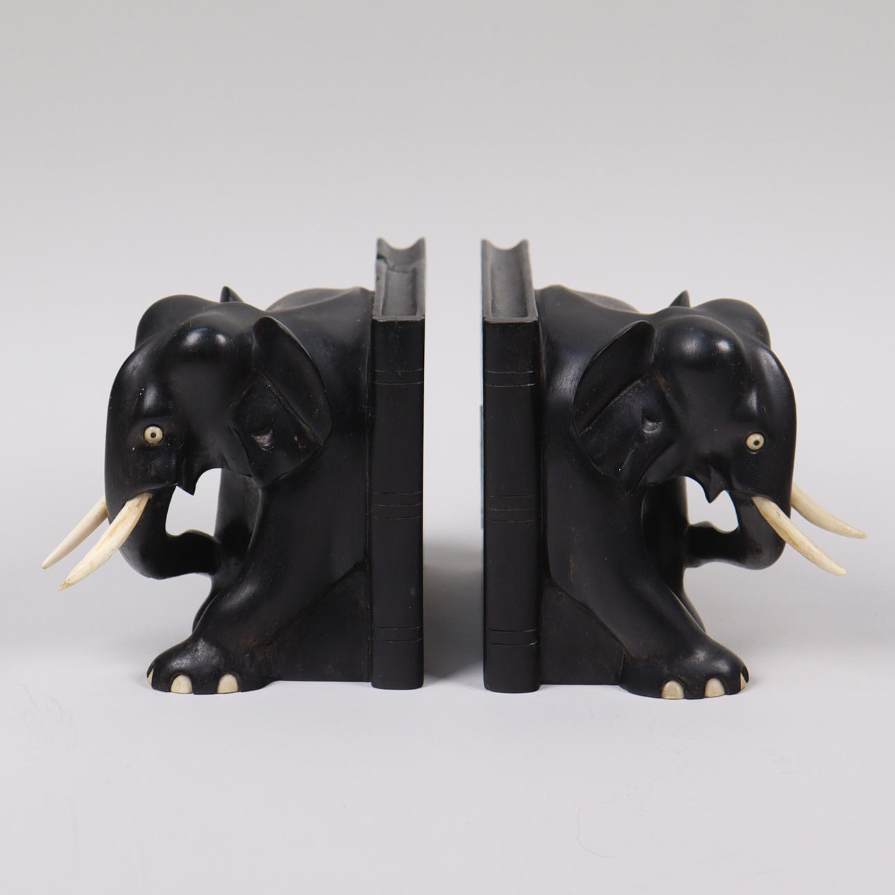 BOOKENDS, elephants, ironwood, 1 pair.