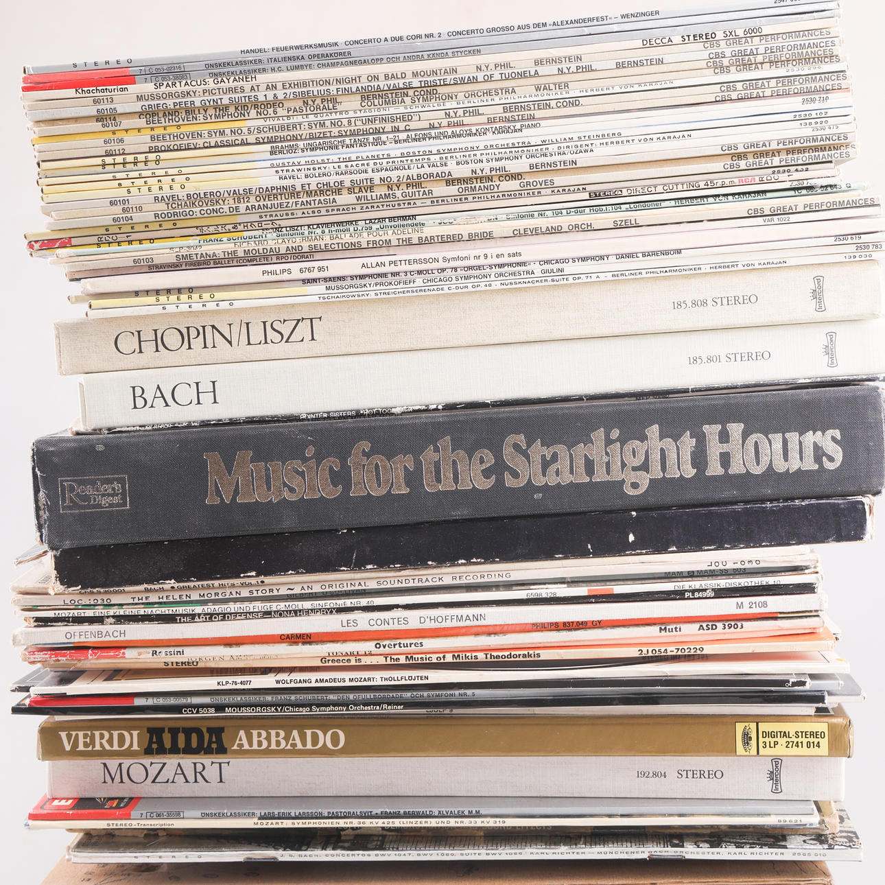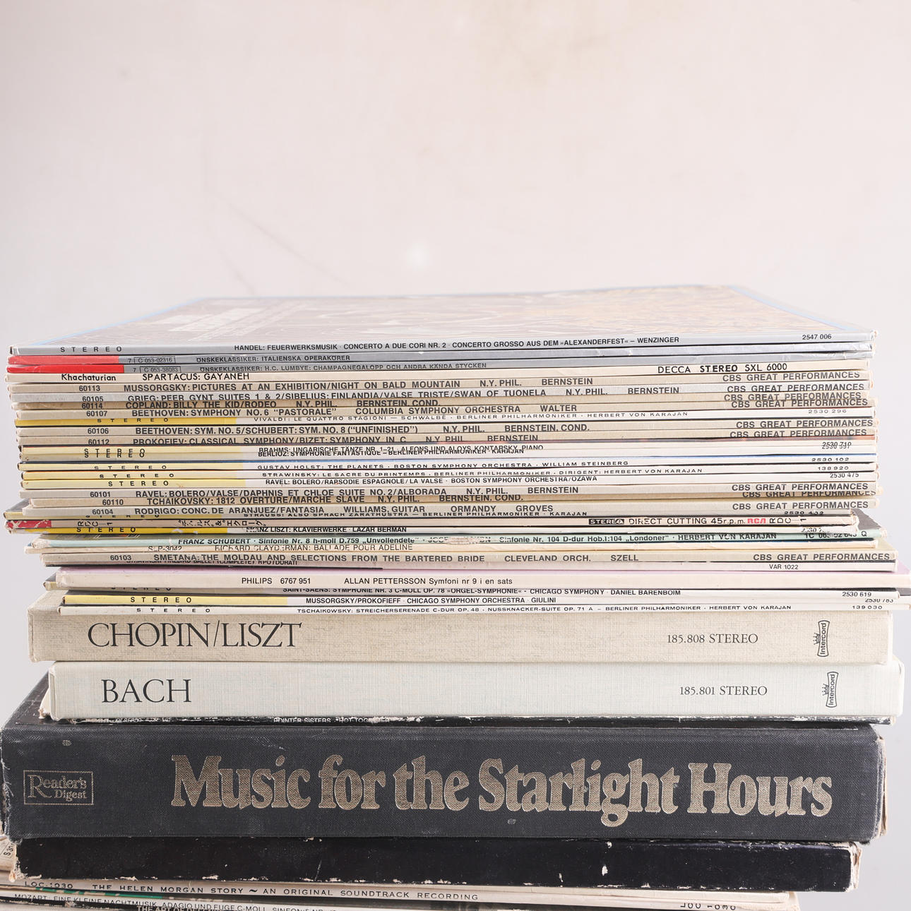 Larger batch of vinyl records, mostly classical music.