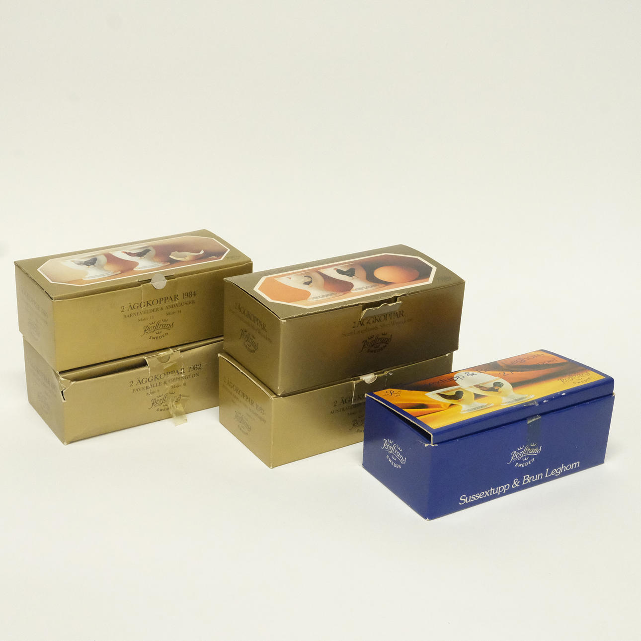 With different breeds of hens and roosters, no. 1, 2, 5, 6, 9, 10, 11, 12, 13, 14, height 6,5 cm, in original boxes.