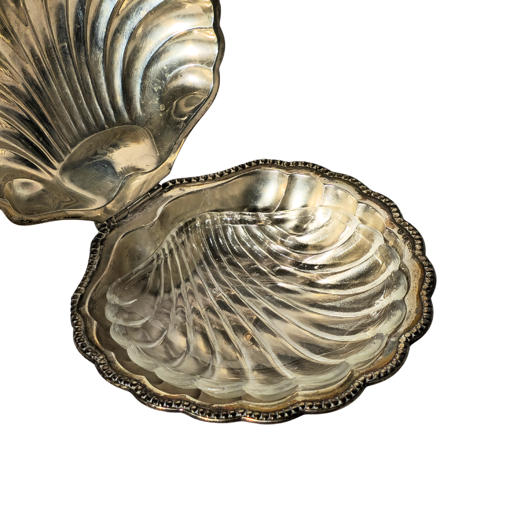 ORIOLE. SHELL-SHAPED BUTTER DISH IN PUNCHED SILVER.