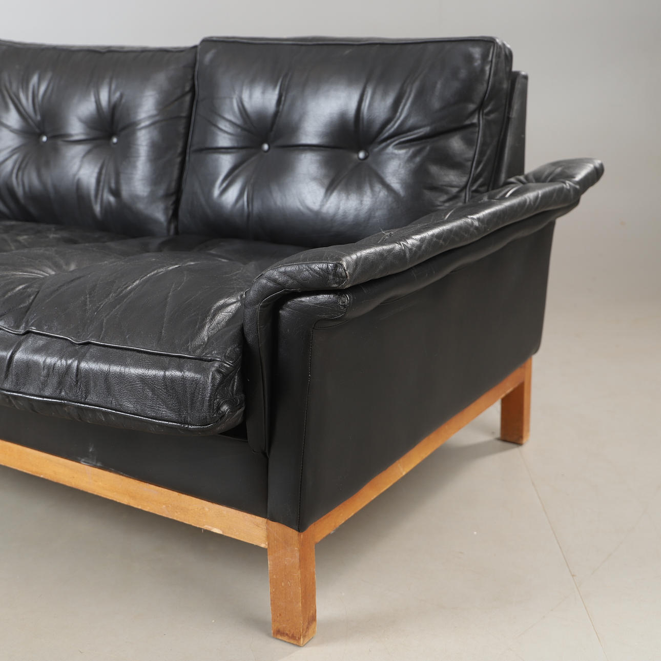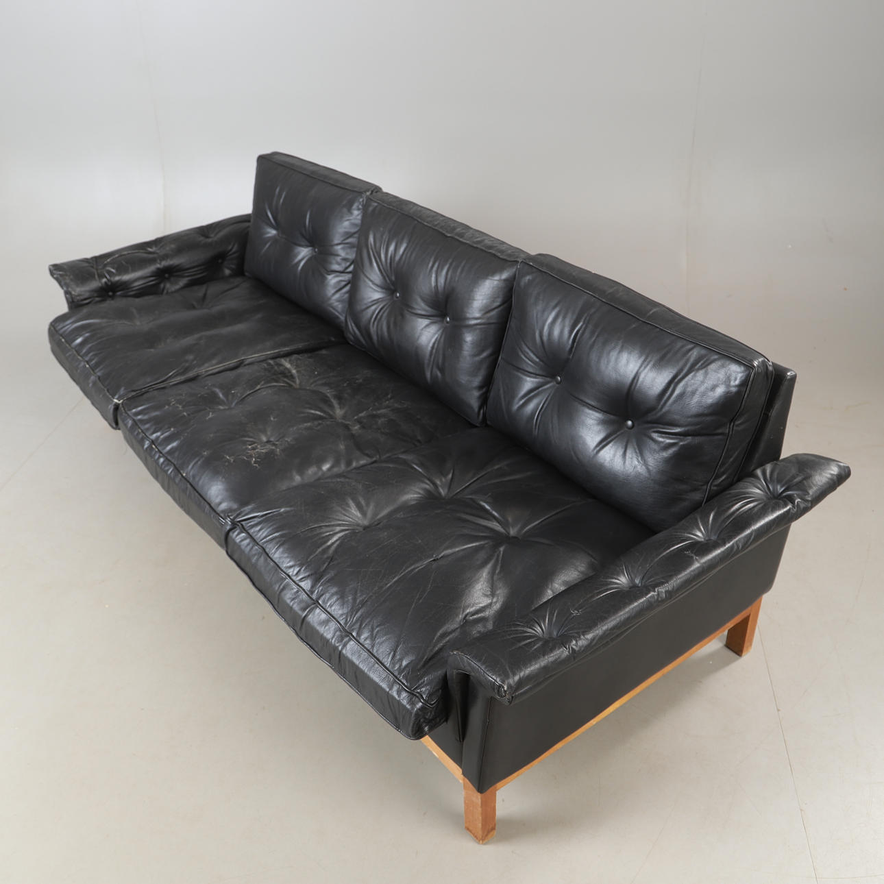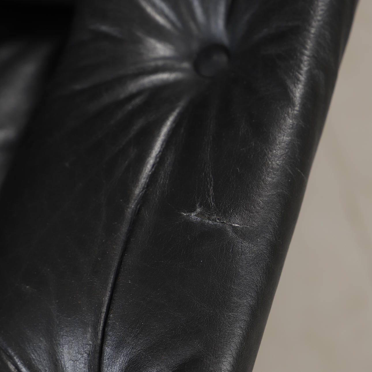 Abrasions, scratches, wear and tear, small damage, a furniture button is missing.
