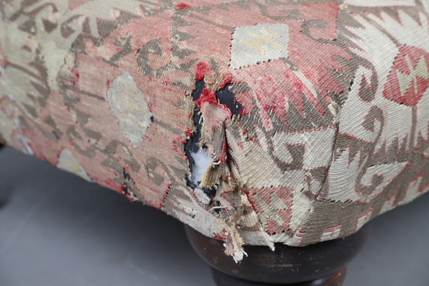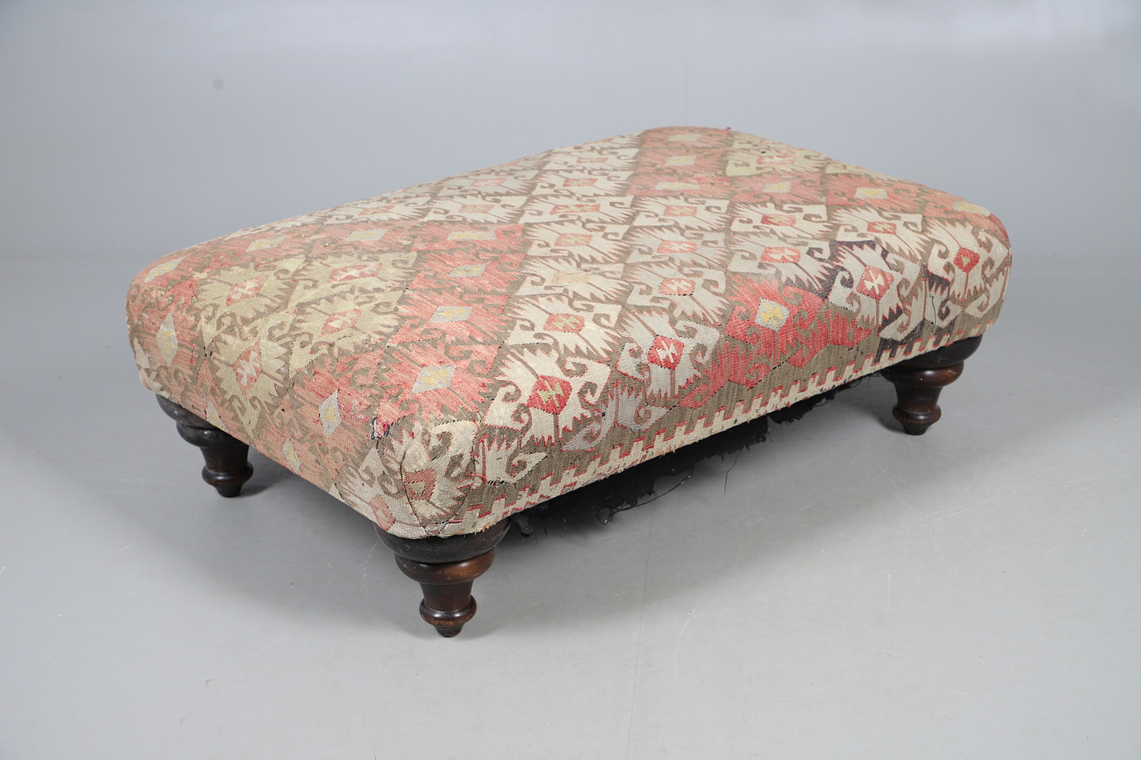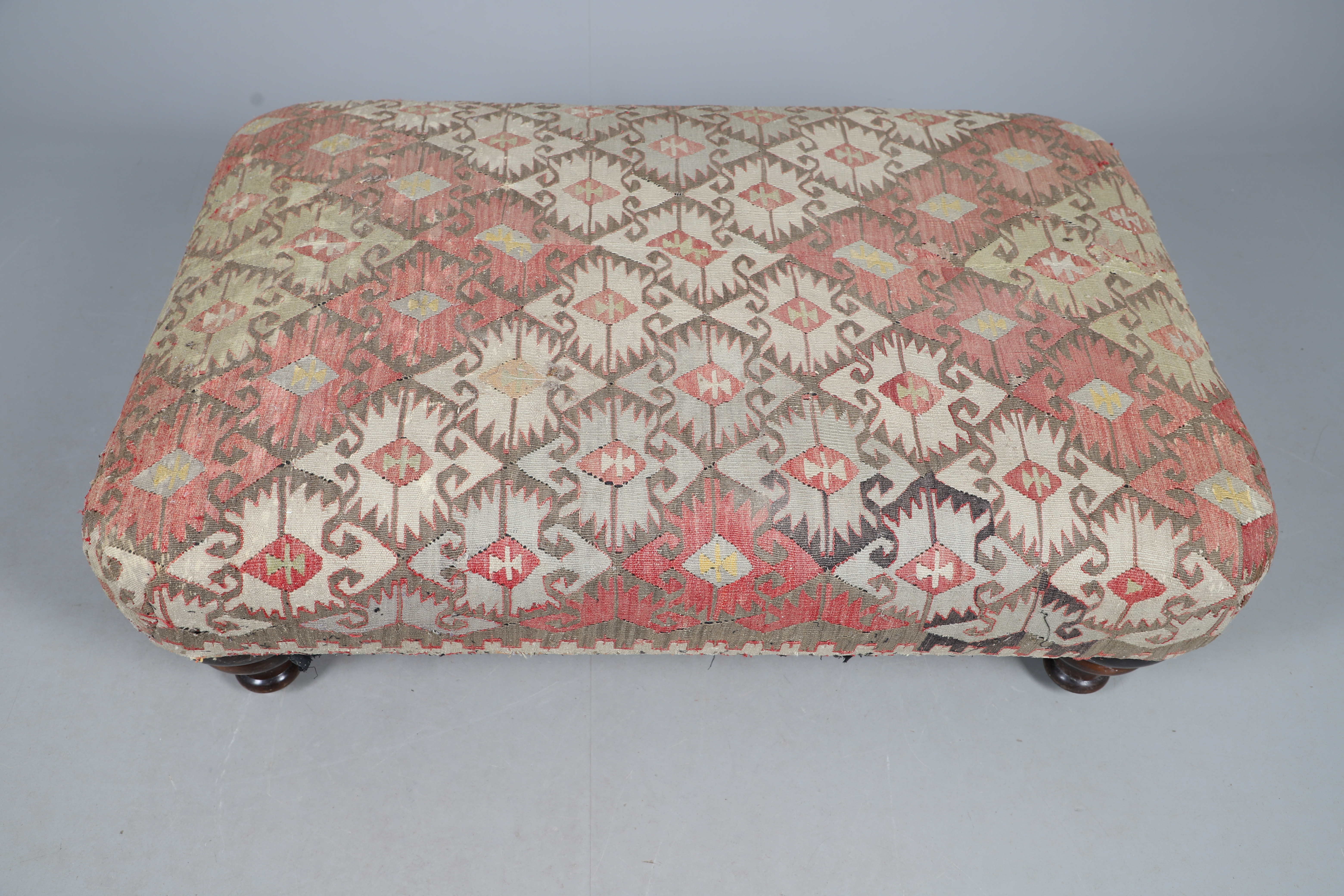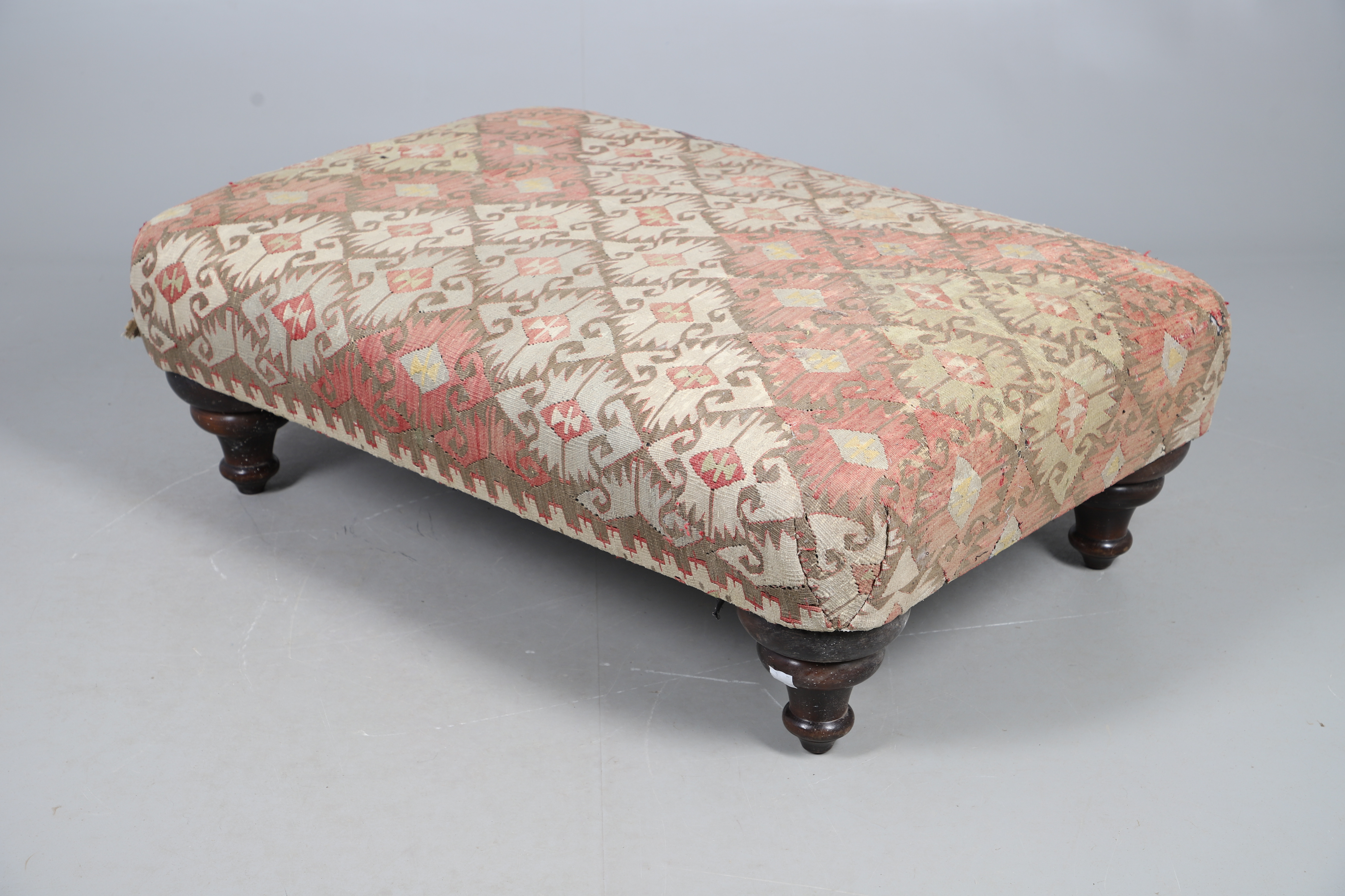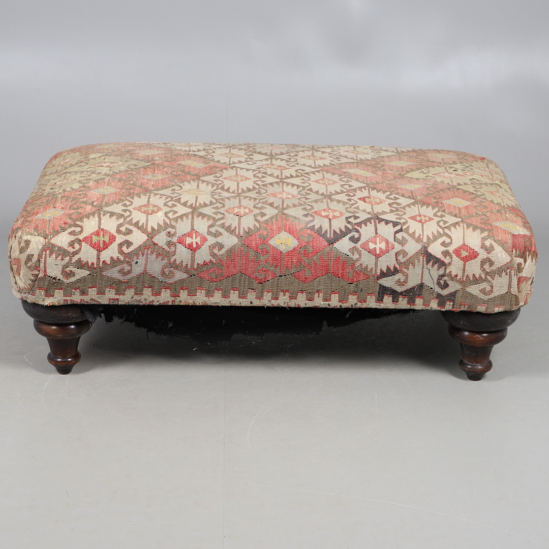 4991940. A GEORGE SMITH KELIM COVERED HEARTH STOOL.