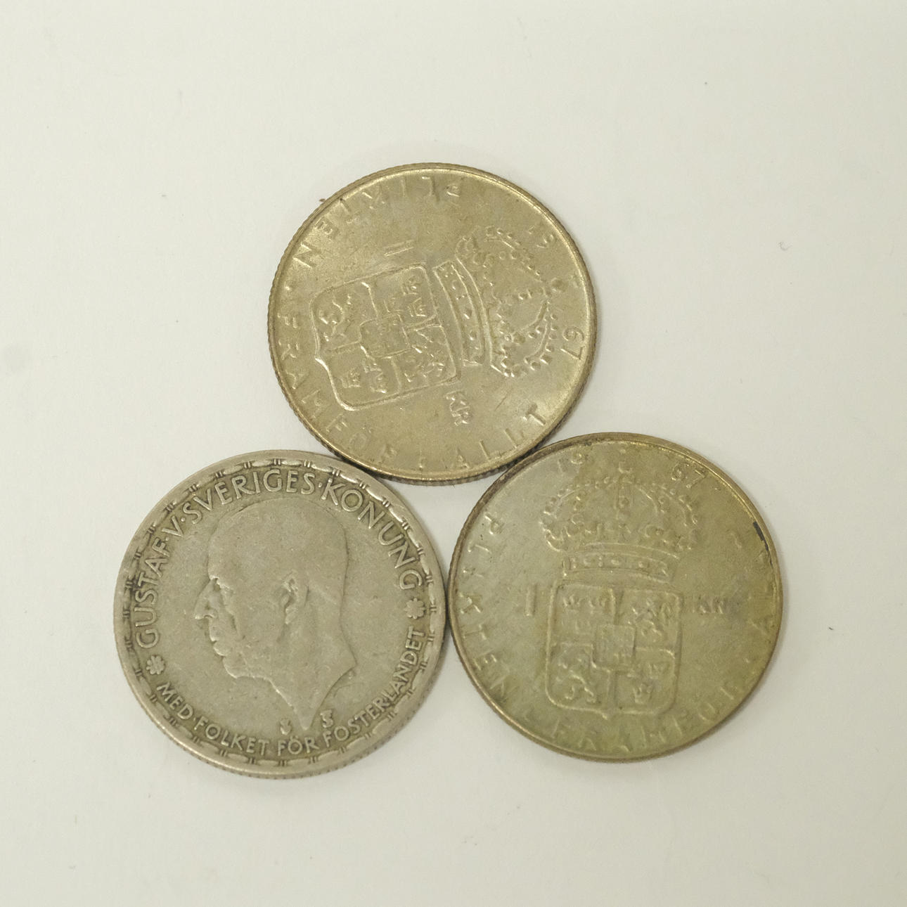 Three Swedish silver coins, 40% silver, weight approx. 21 grams.