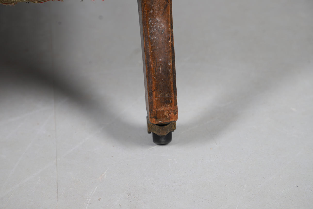 In need of new upholstery. General marks, wear and dirt. Some losses to the upholstery. Wear to the casters. Other imperfections. See online images.