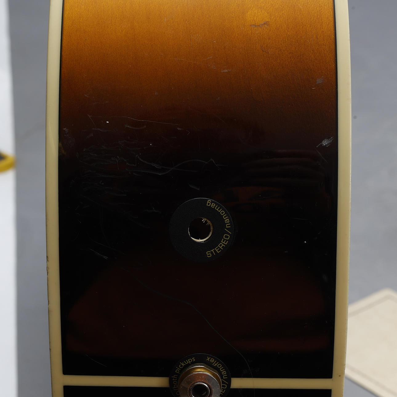 badge on back, missing strings, electricity not tested, scratches and marks see photos.