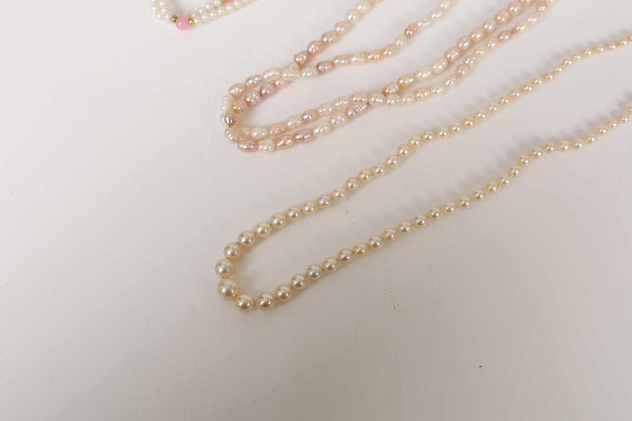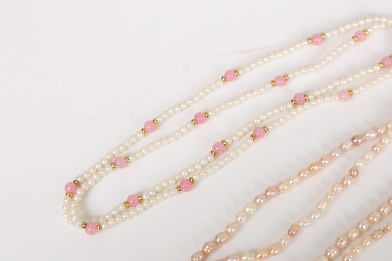 To include a freshwater pearl example, 50cm long, 80cm long and 84cm long (3).
