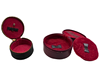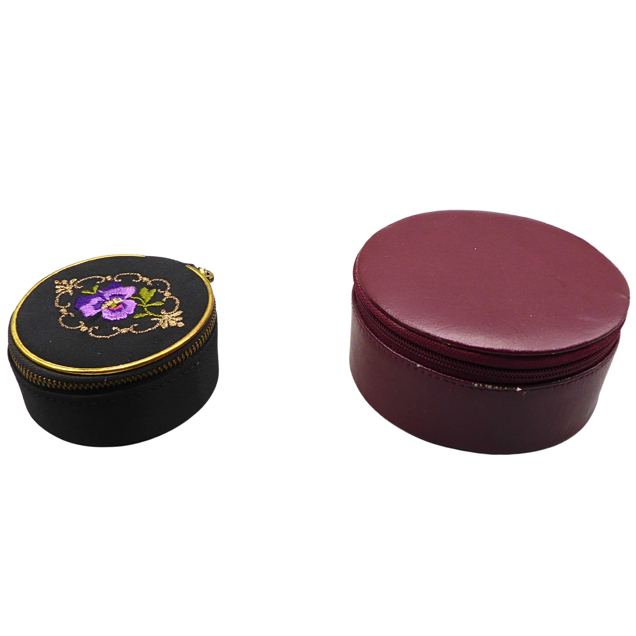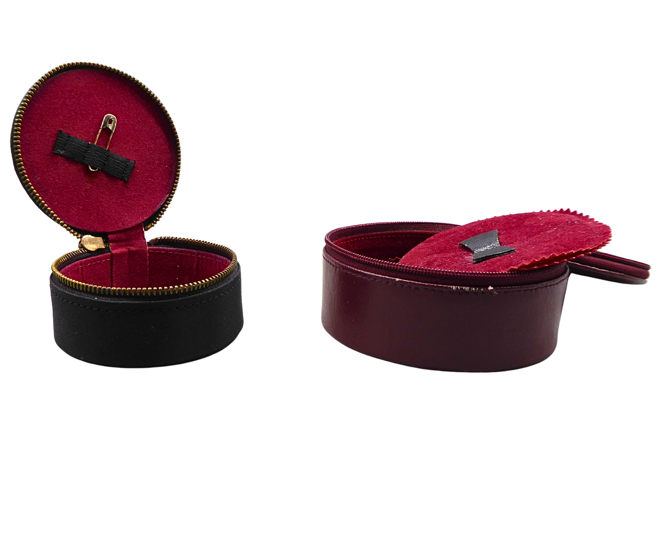 The burgundy case has a matching zipper and a removable bottom to separate jewelry.