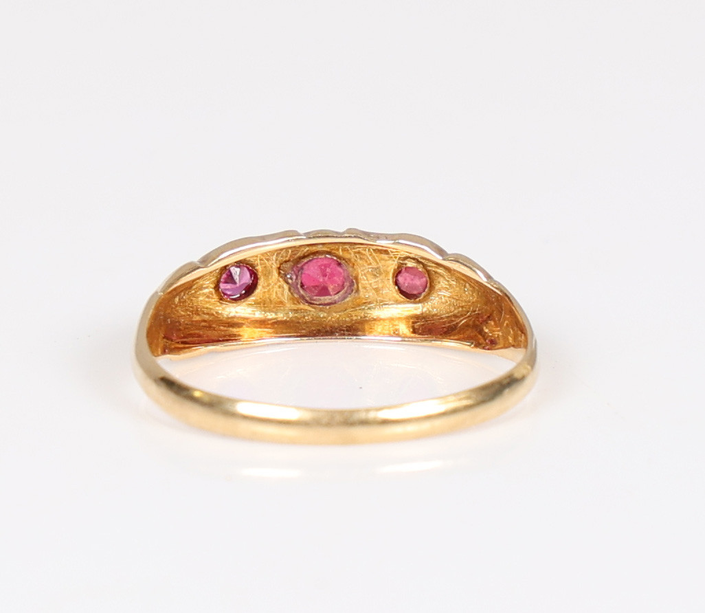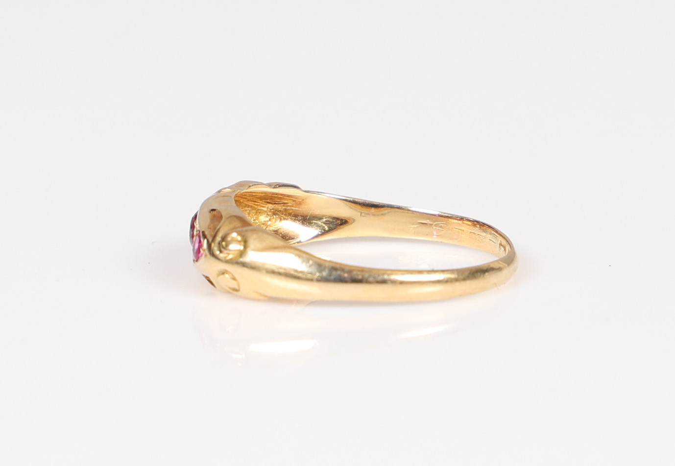4992344. AN 18 CARAT GOLD, RUBY AND DIAMOND RING.