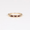Set with four round cut diamonds interspersed by three rubies, ring size O, 2.2g.