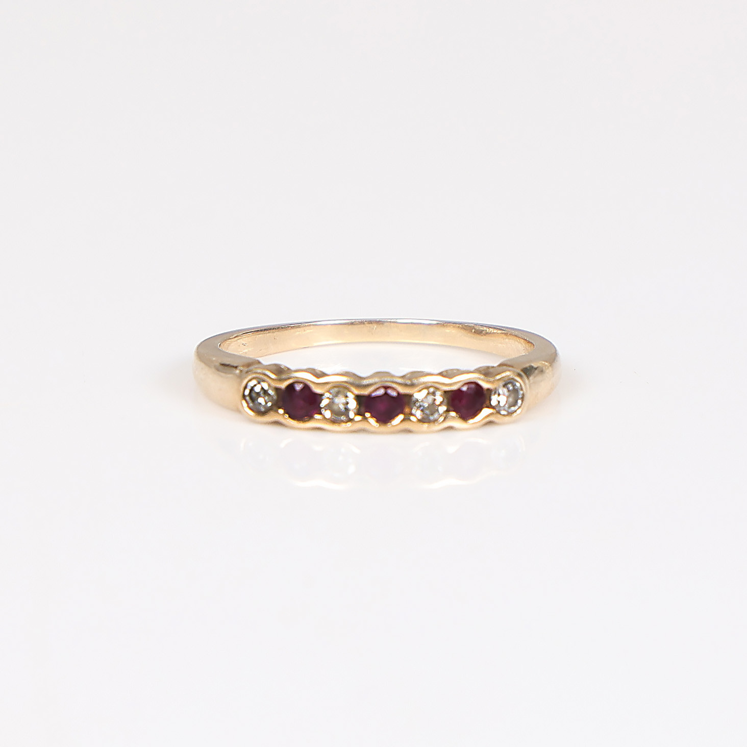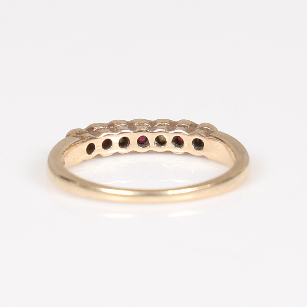 4992423. A 9 CARAT GOLD, RUBY AND DIAMOND RING.