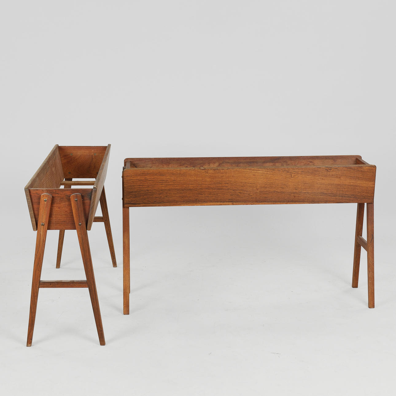 Two planters veneered in rosewood, inserts missing, 1950s-60s. H. 53 x 90 x 23 cm, internal dimensions h. 12.5 x 85 x 15 cm.