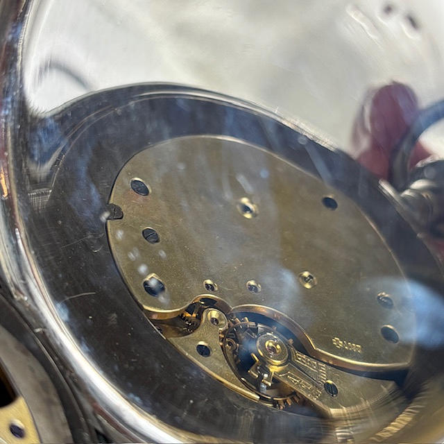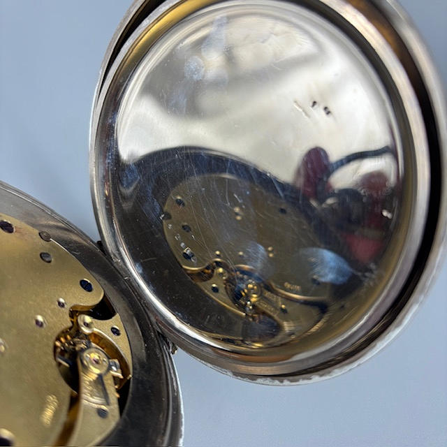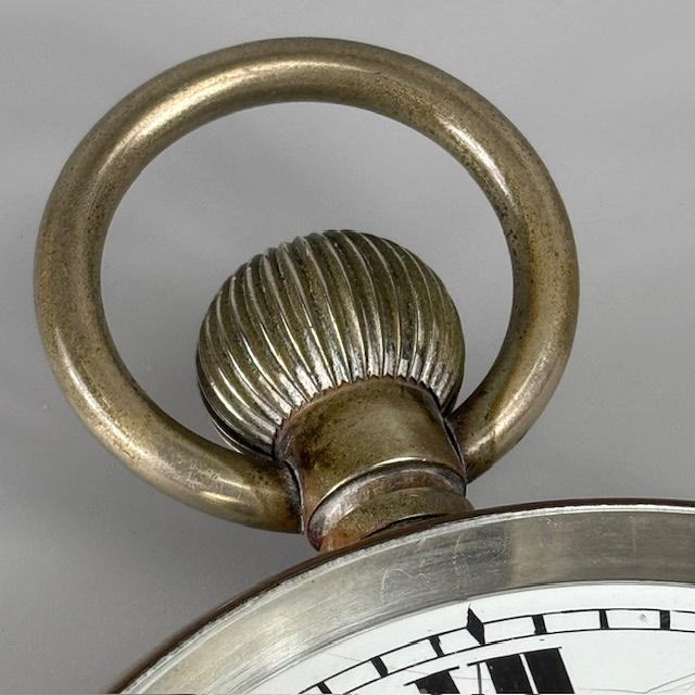 Antique goliath pocket watch, top winding, white face with roman numerals and inset second dial, back of case engraved Wesleyan Church Moses Gate, approximately 9cm diameter.