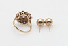 the ruby and diamond cluster ring set with eight-cut diamonds, together with a pair of 9ct gold stud earrings, total weight 4.1g.