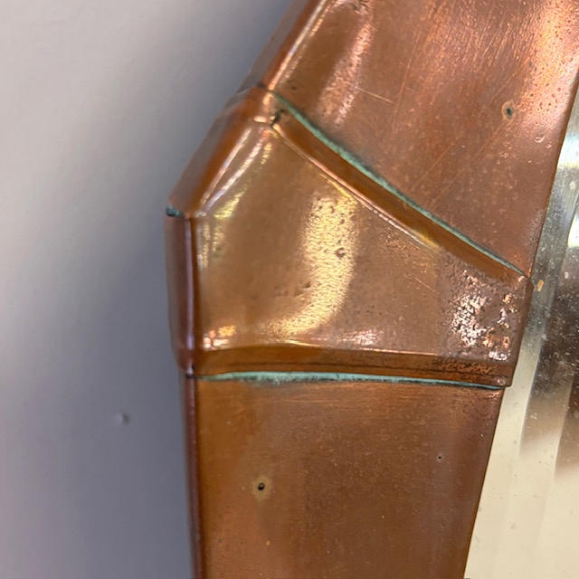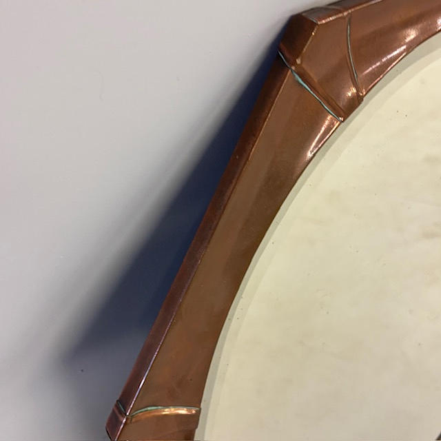 Art Deco copper framed oval wall mirror approximately 66 x 46cm.