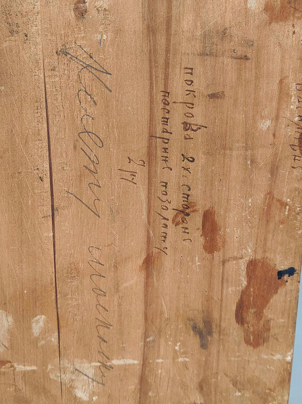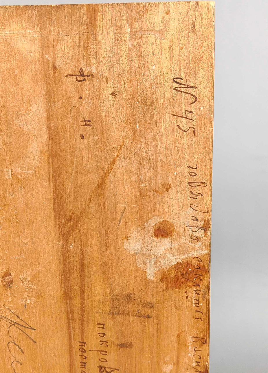 old Russian icon, on wood, inscribed on the back, original condition, dimensions: 31 x 35 cm.