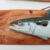 Ceramic fish mounted on wooden board, approx. 40 x 9 cm - 48 x 12 cm.