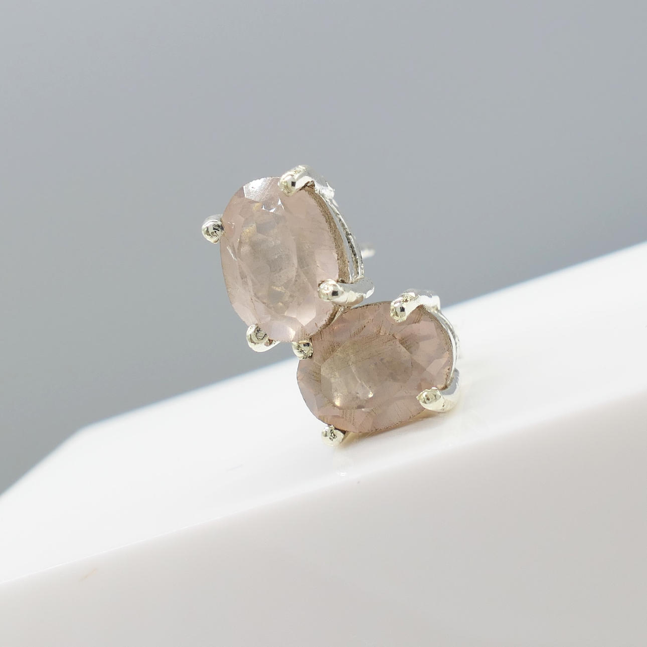 Rose quartz: natural gemstones; 8 x 6mm each; 1.90ct total approx; pale pink tone