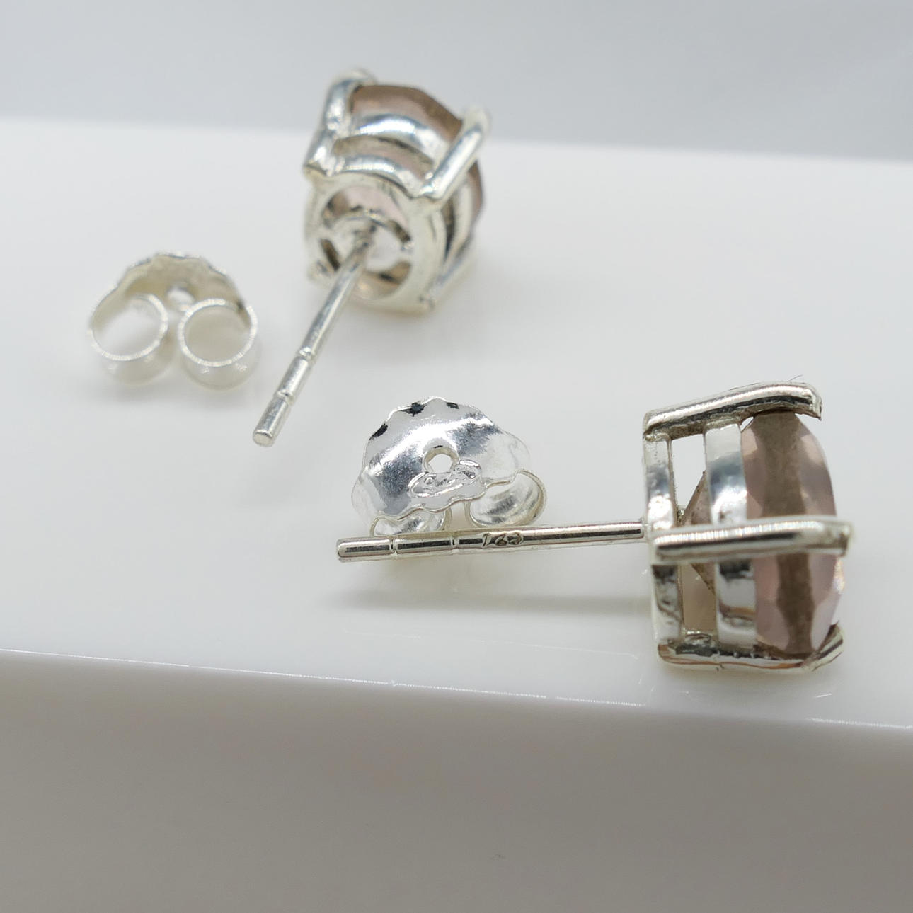 Ear studs: 925 silver; claw set; butterfly backs; weight 1.9 grams.