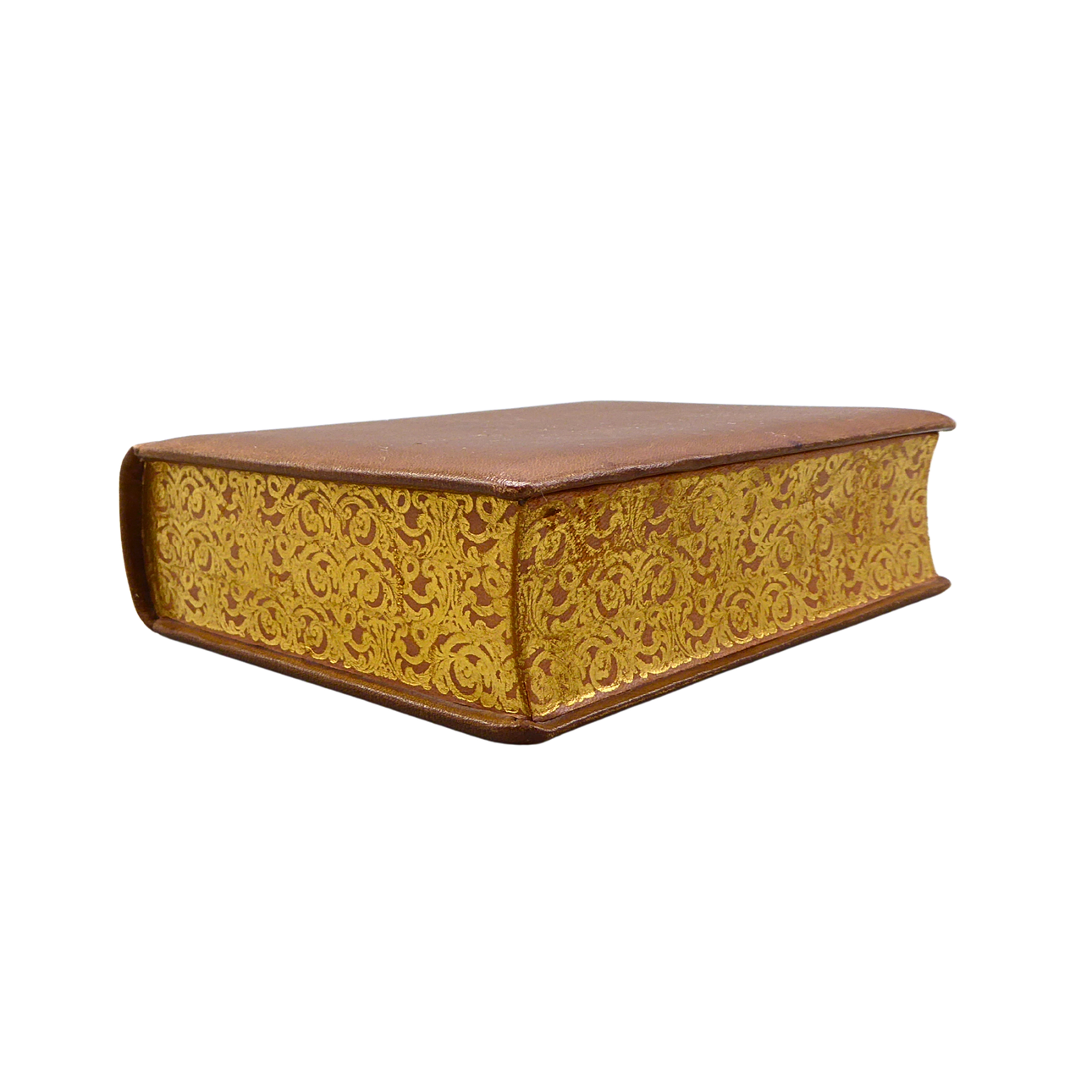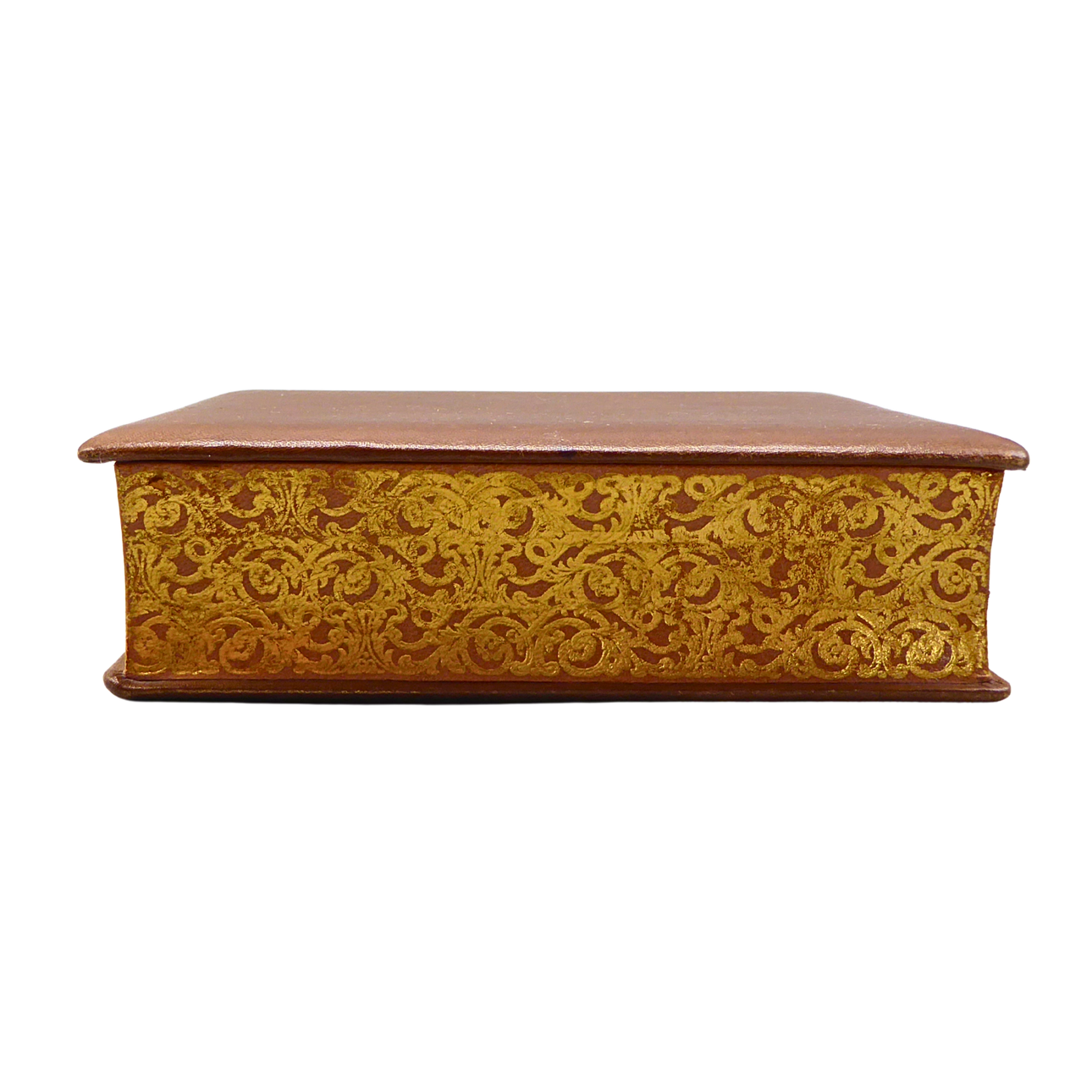 Storage box in the shape of a classic hardcover book The interior is completely lined with a brown, velvet-like textile lining (felt).