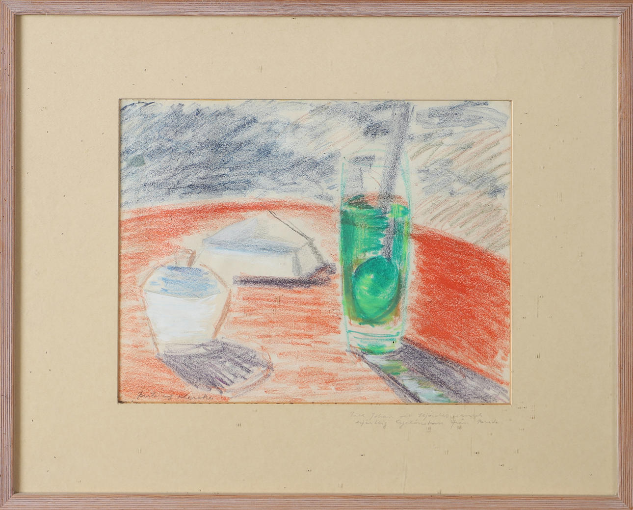 4993617. BRITA AF KLERCKER. Still life, drawing, signed with dedication.