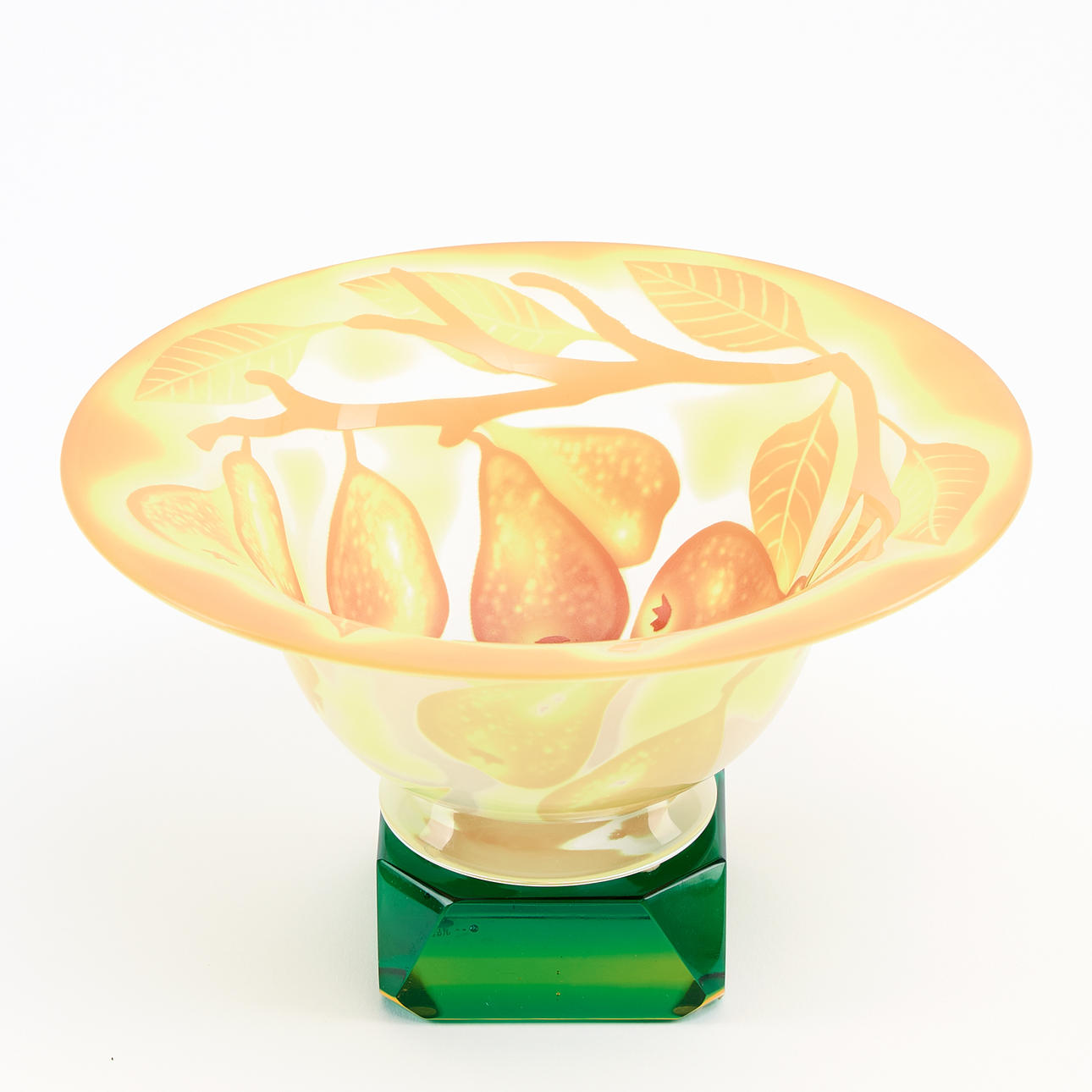 Signed Astrid Gate unique 1993, overhang with pear decor, H. approx. 9 cm, stand H. approx. 3 cm.