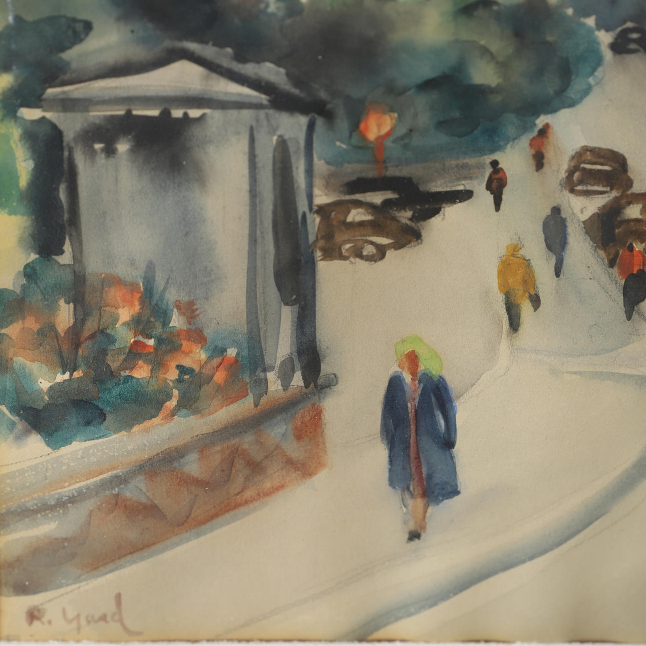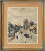 4993887. OIDENTIFIERAD KONSTNÄR. Cityscape, watercolour, indistinctly signed.