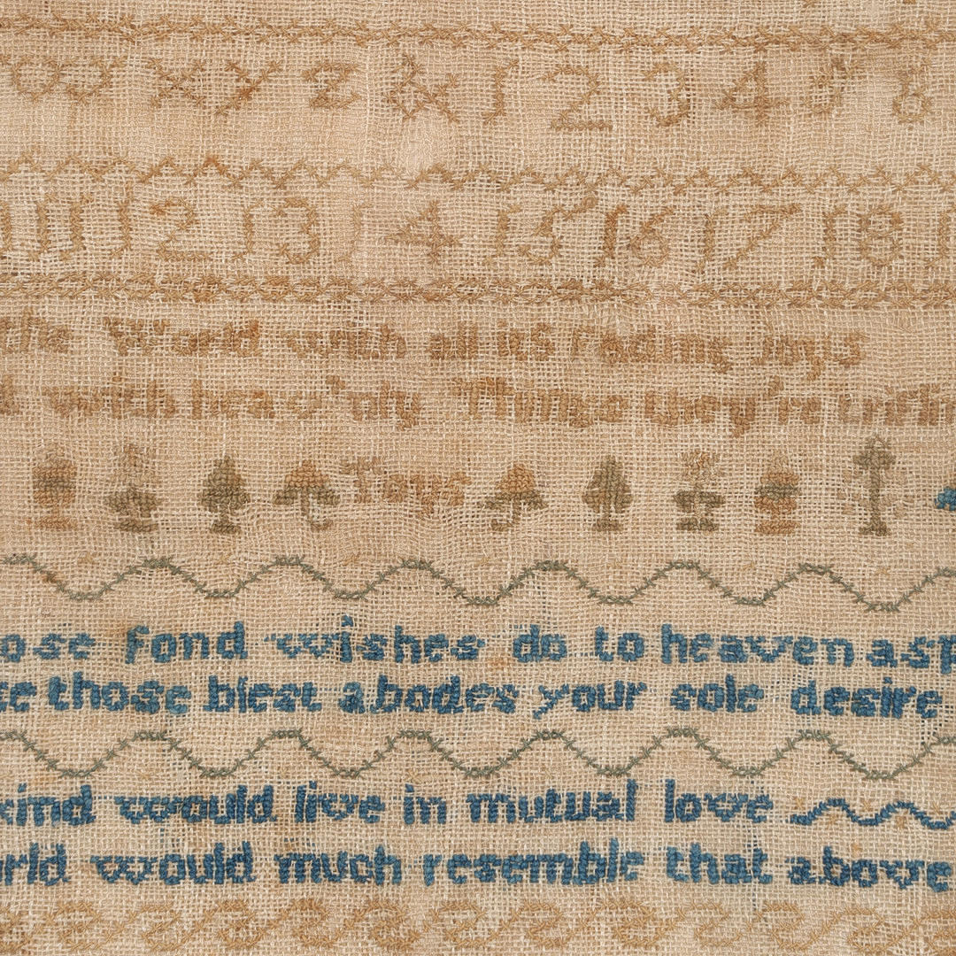 A VICTORIAN NEEDLEWORK SAMPLER BY LOUISA BURNHAM DATED 1840.