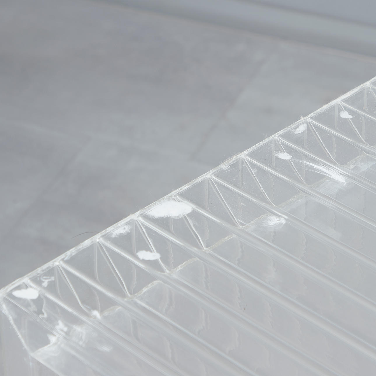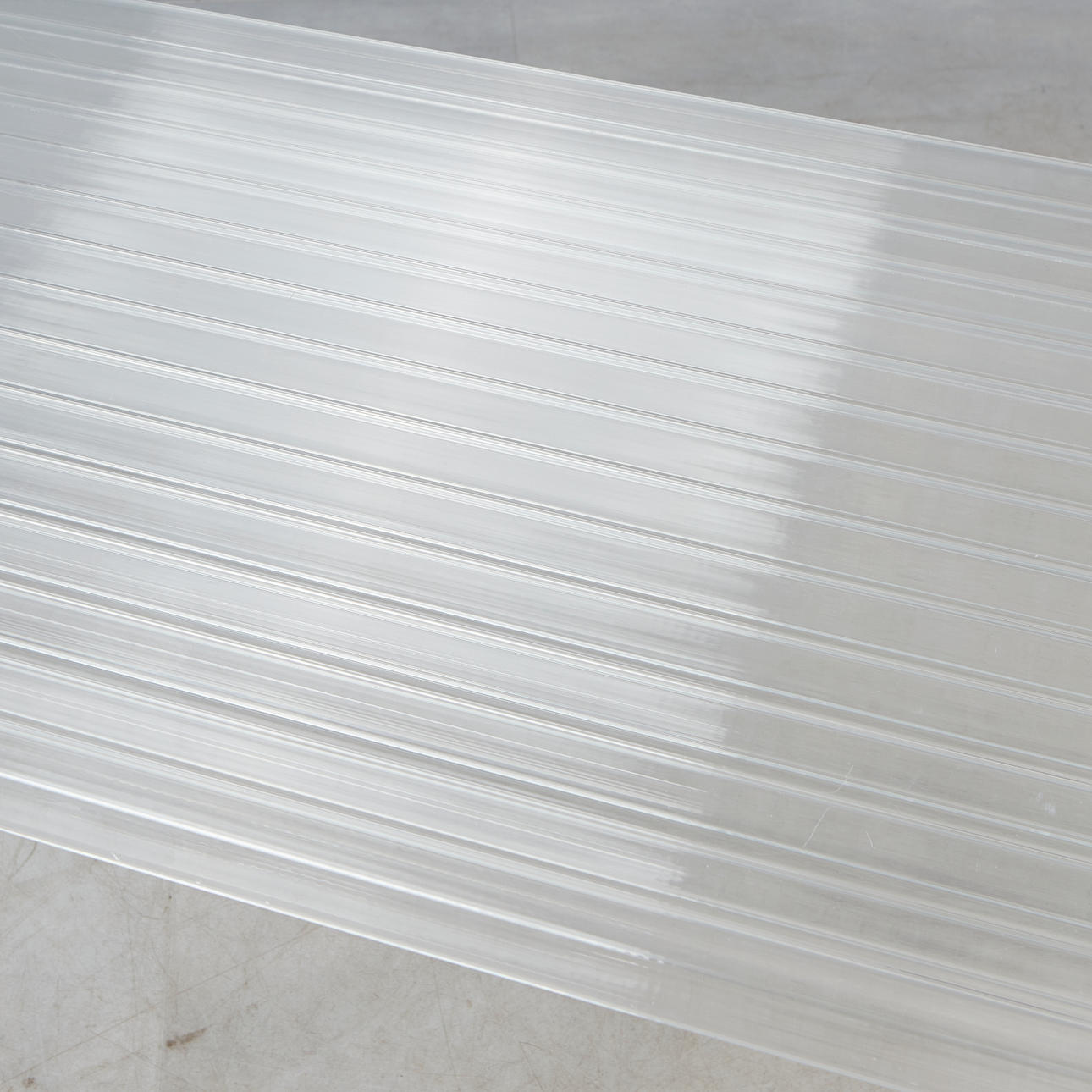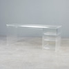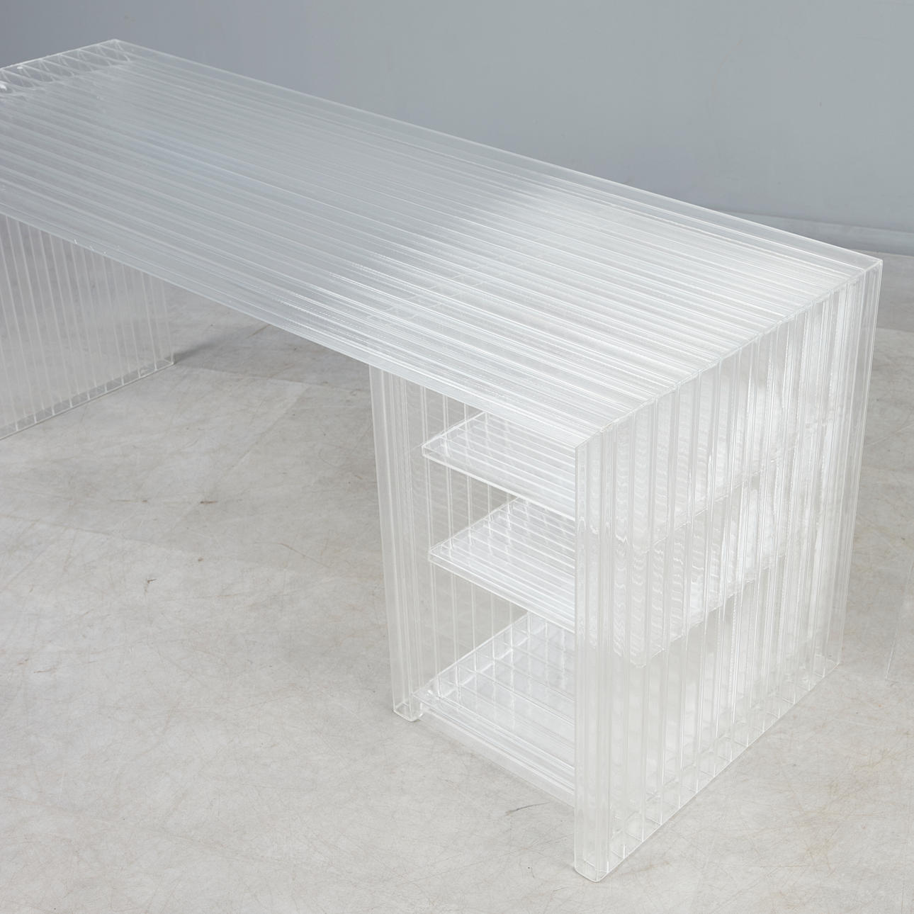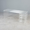 Rectangular writing desk made of transparent acrylic, right with three shelves, H.65,5cm, W.160,5cm, D.58cm.