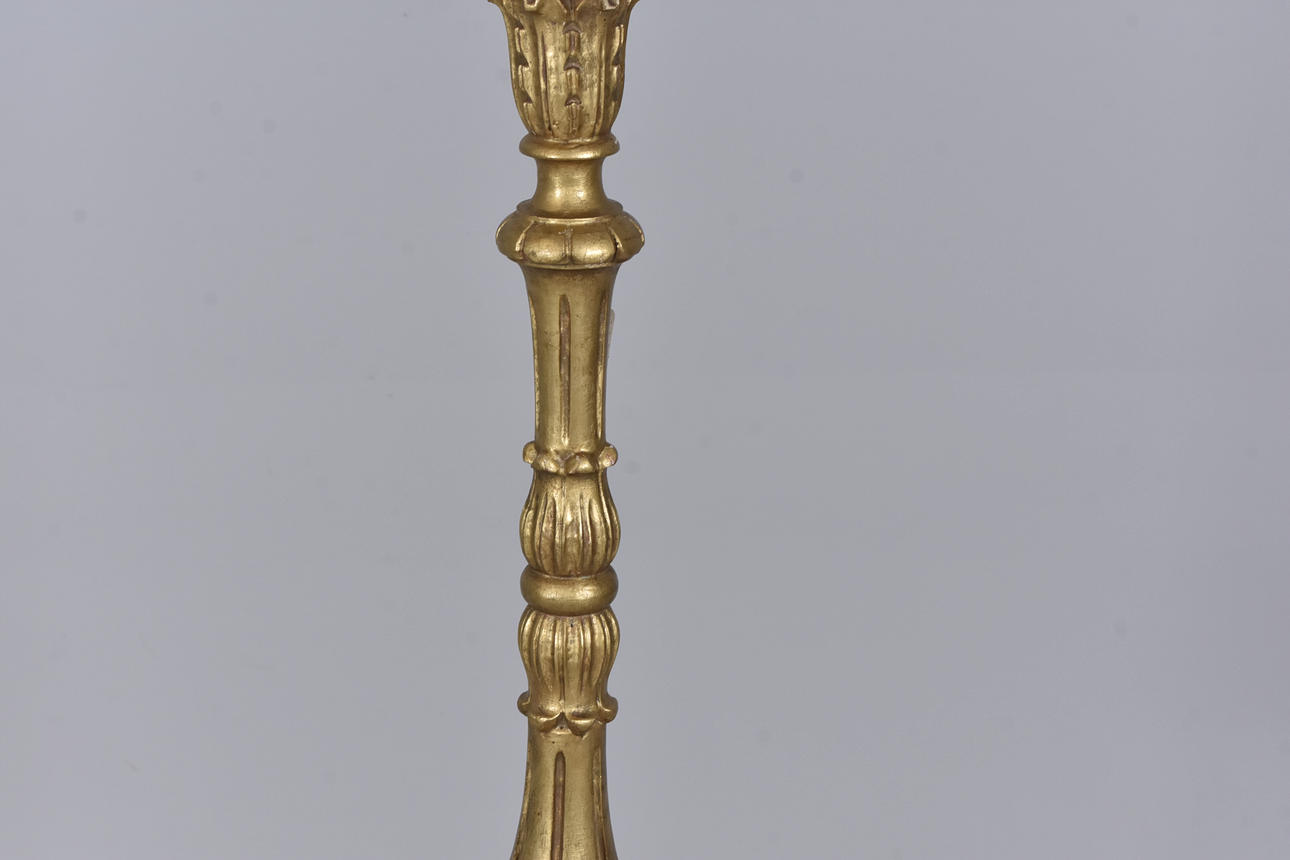 FLOOR LAMP, cut and bronzed wood.