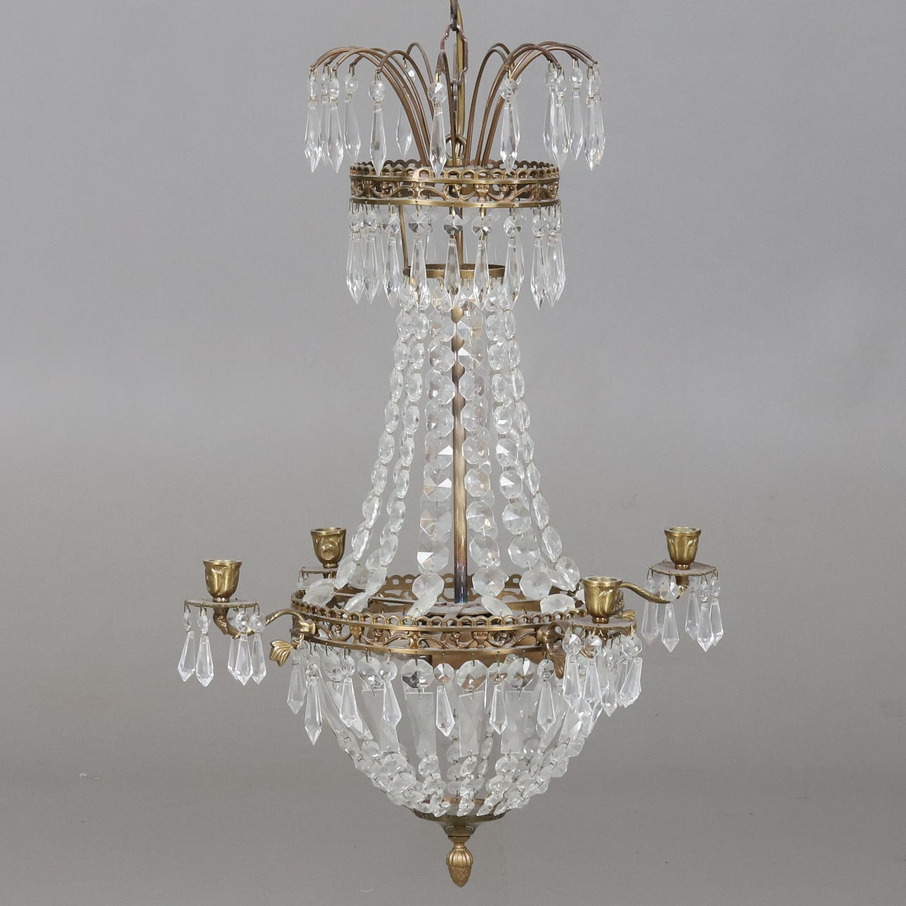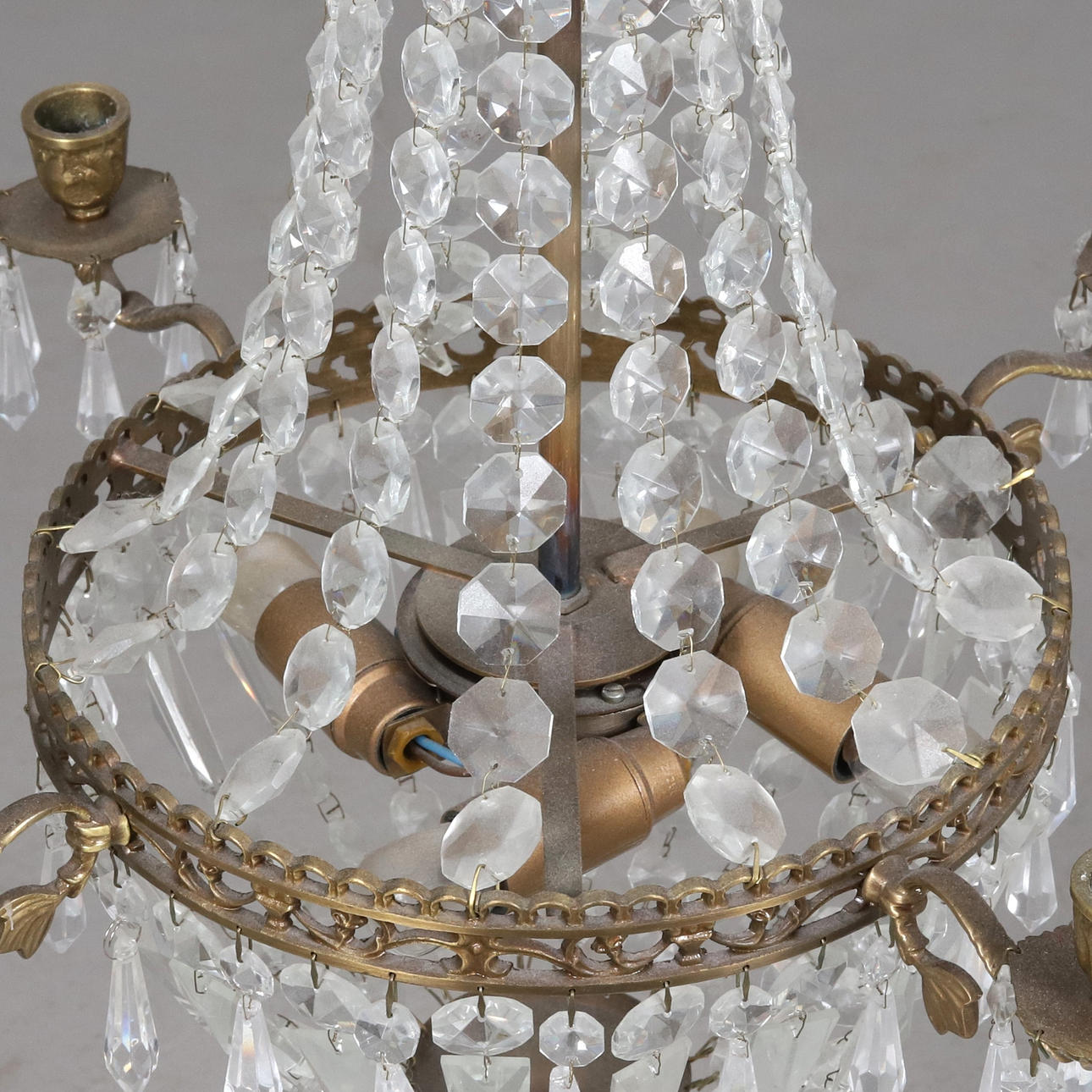 Chandelier for four lights, electrified.