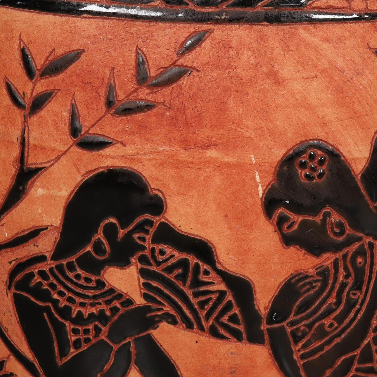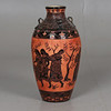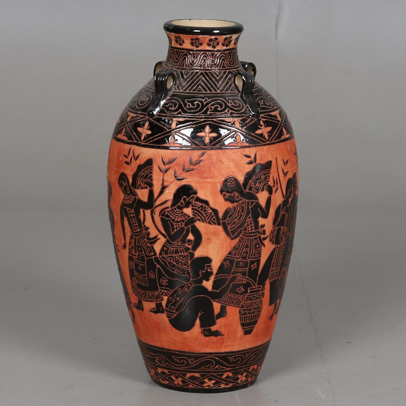 The urn has handrails. Decoration of musical company in black color against terracotta background. Approx. 57 cm height.