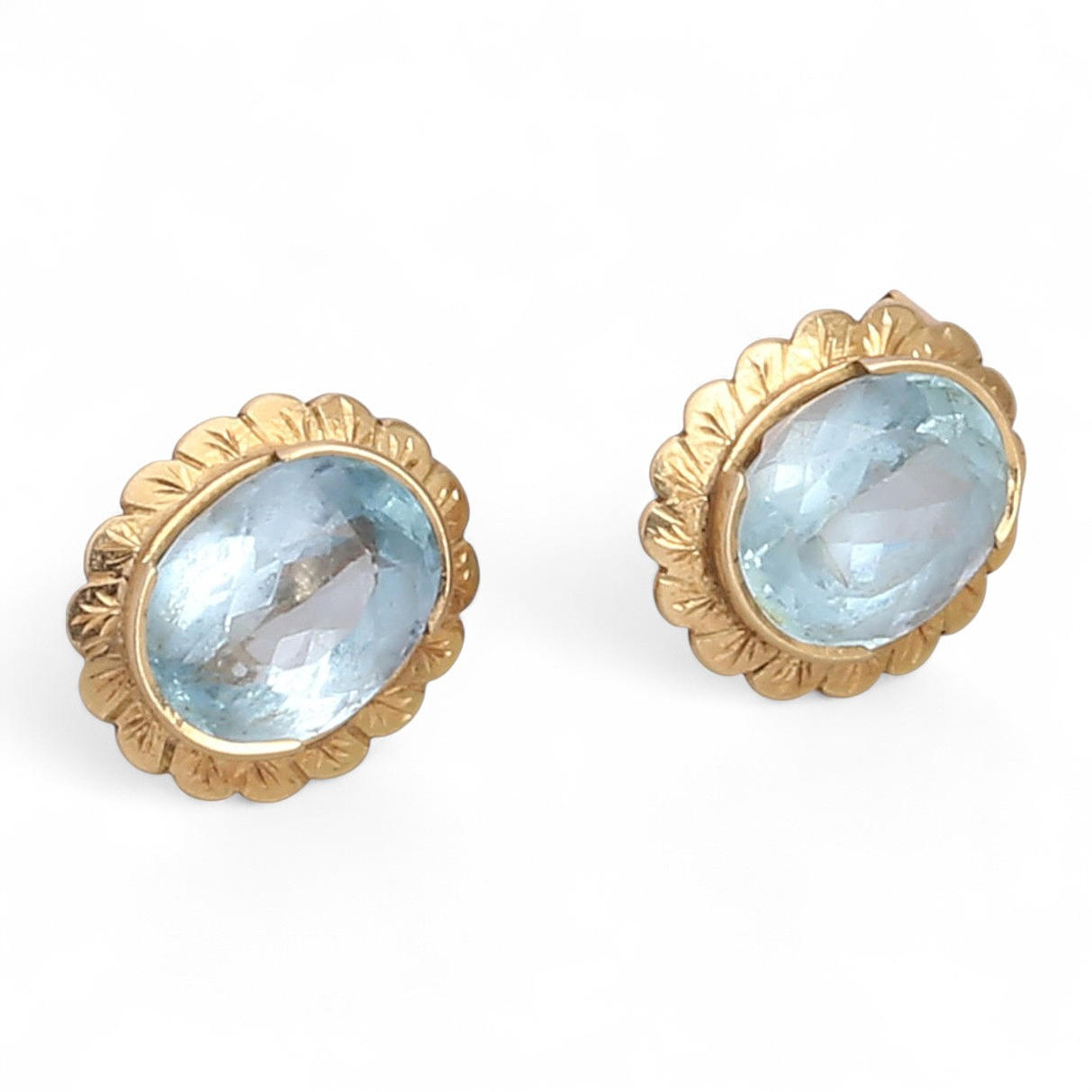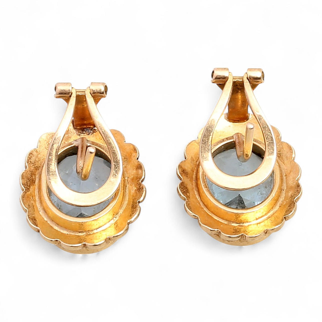 18K gold and oval cut blue topazes, approx. 3.34 cts. 1.8 x 1.5 cm. 12.7 gr.