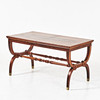 Extendable discs with glass part, mahogany, dimensions approx. 58, 108 x 59 cm.