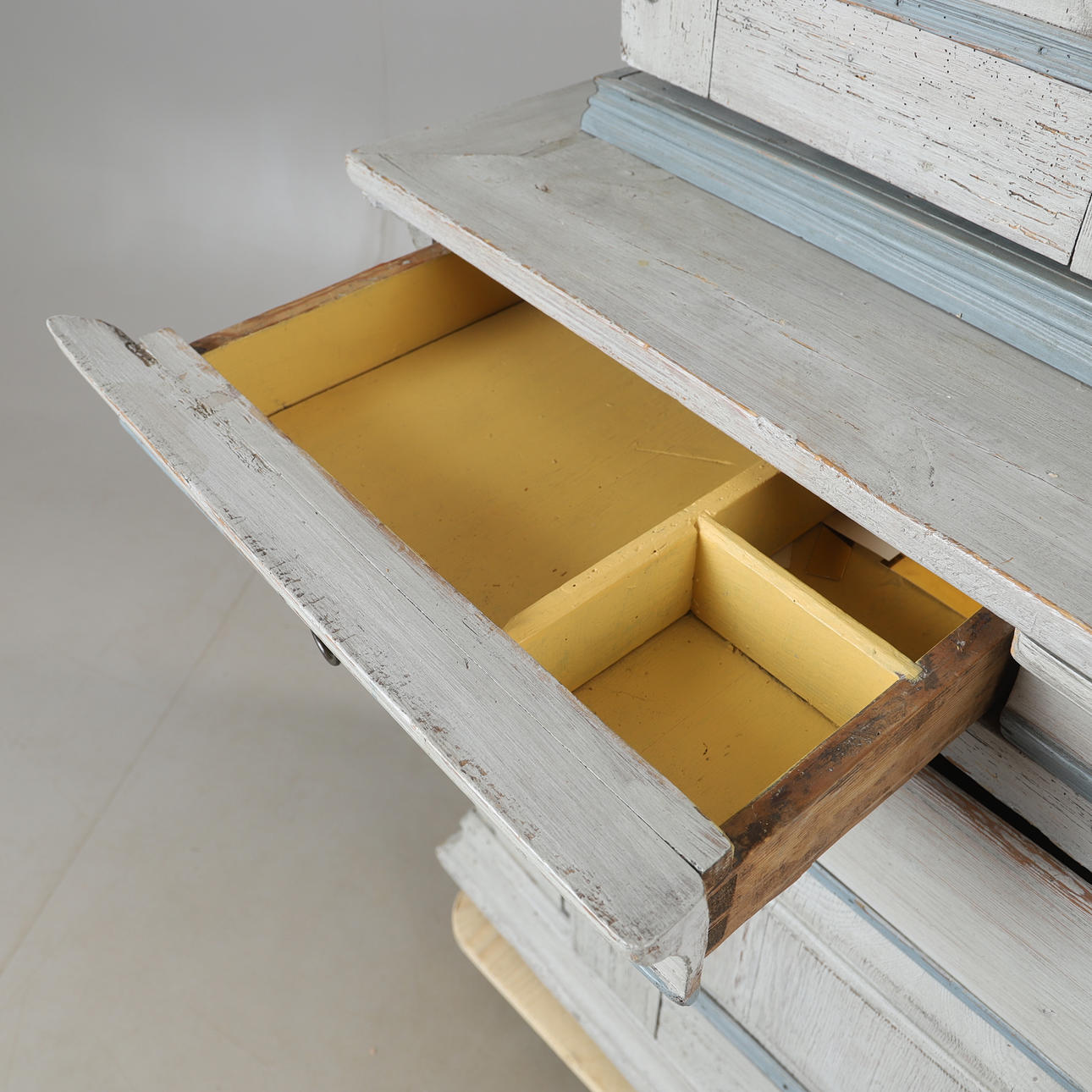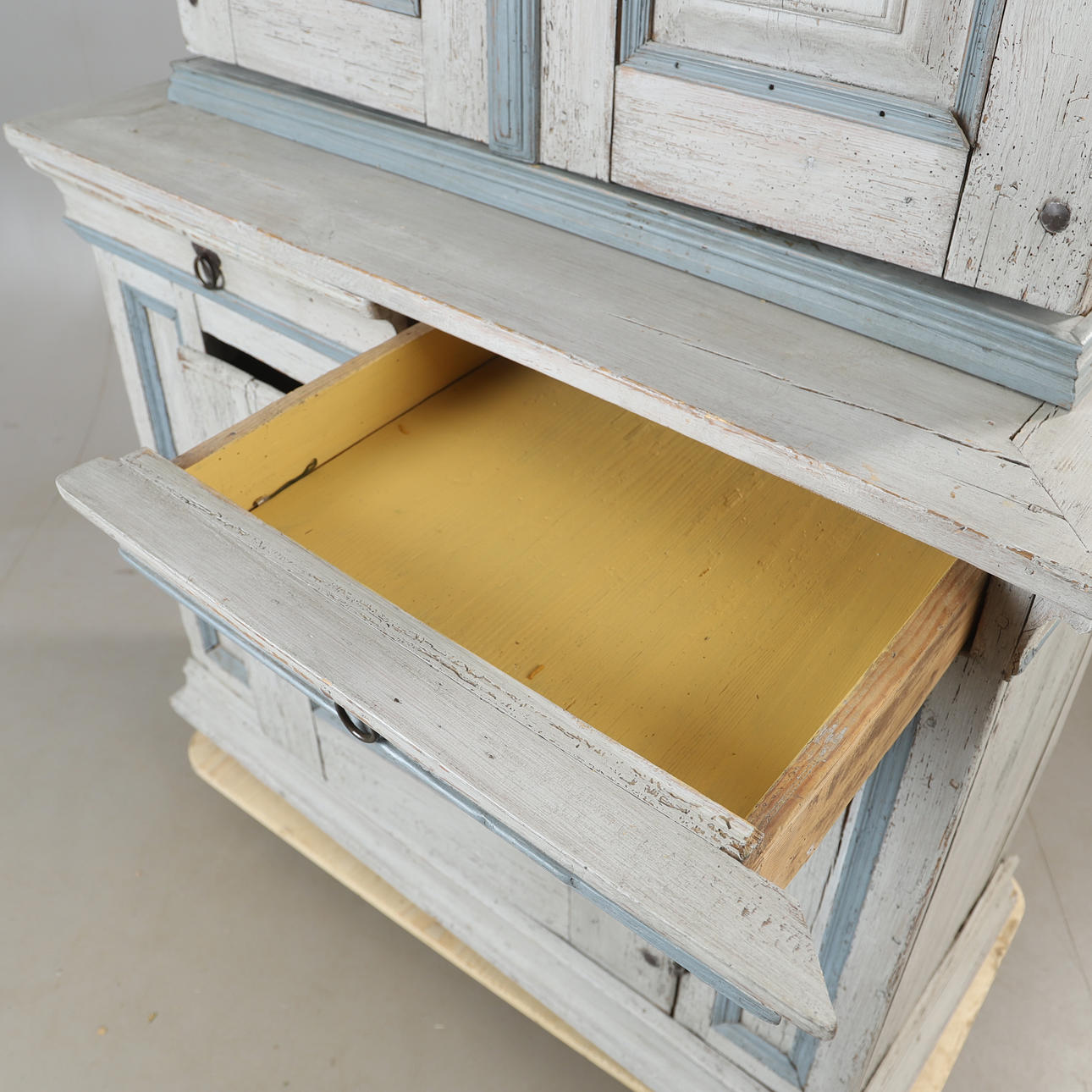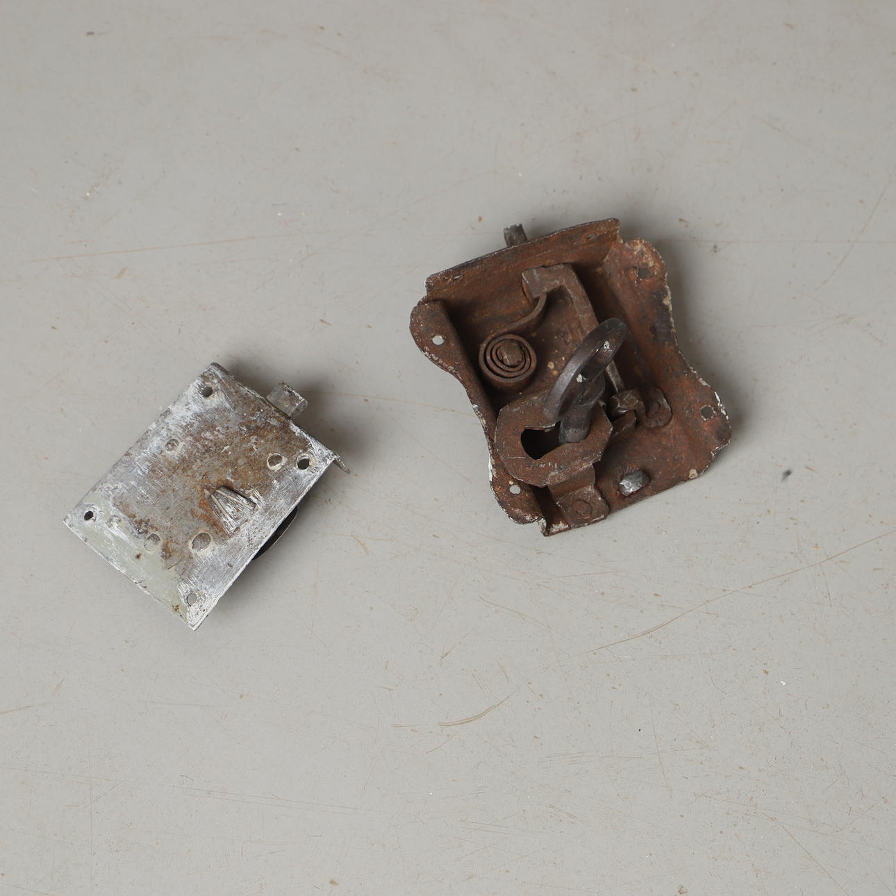 Usage and age-related wear. Completed, loose lock, key fits only in one lock.