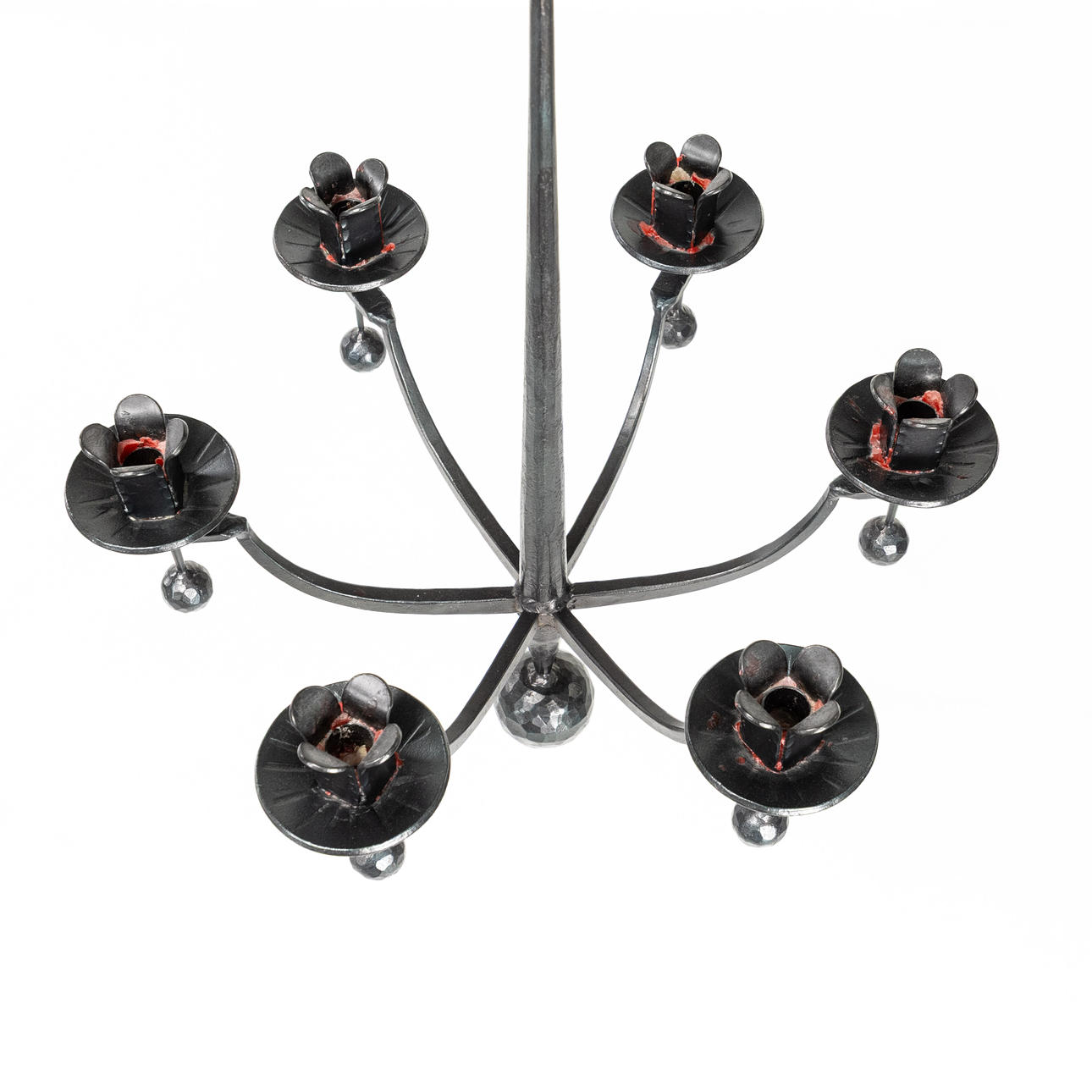 Forged six-arm chandelier, for candlelight, diameter 48 cm, height 70 cm (excl. suspension about 65 cm).